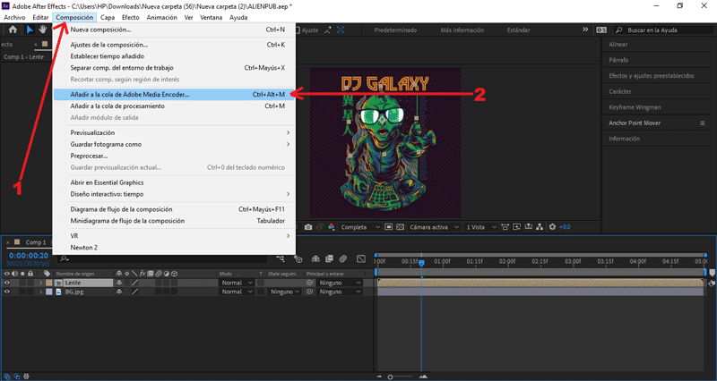Presionamos Composición/Añadir a cola de Adobe Media Encoder...