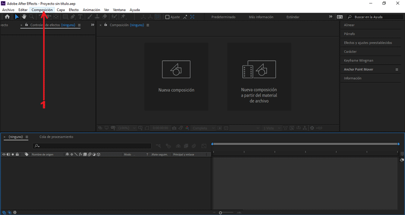 Empezaremos creando una nueva composición.
