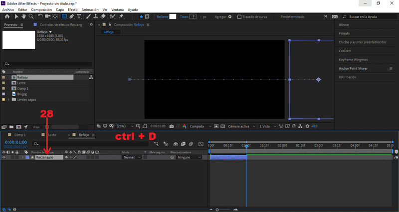 Seleccionamos la composición «Reflejo», presionamos ctrl + D.