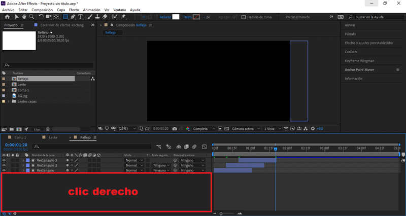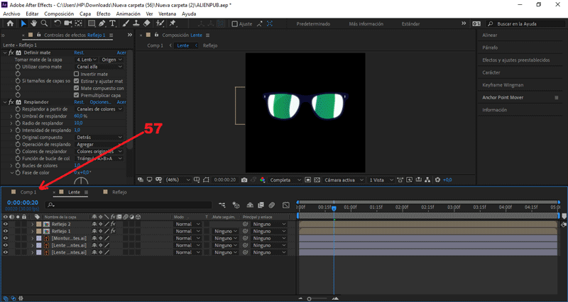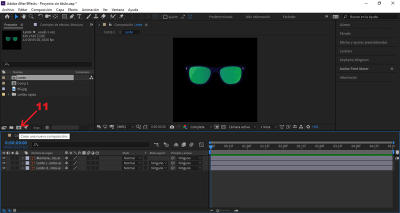 Abrimos la composición «Lente», presionando doble clic sobre ella.