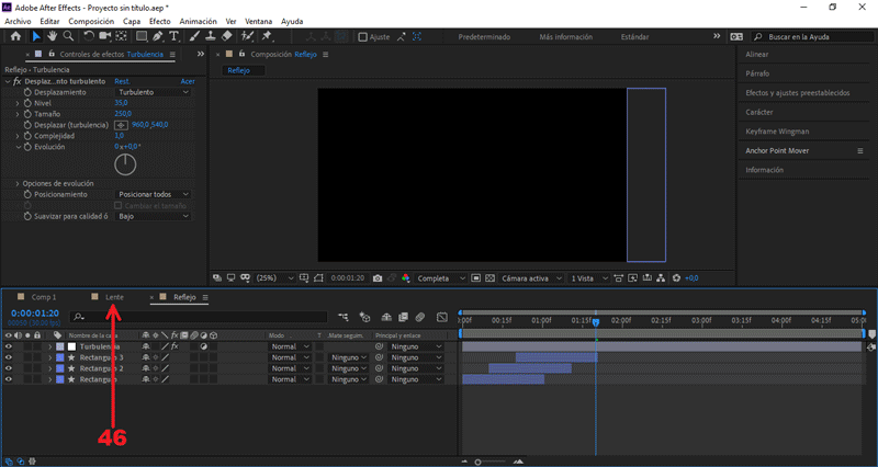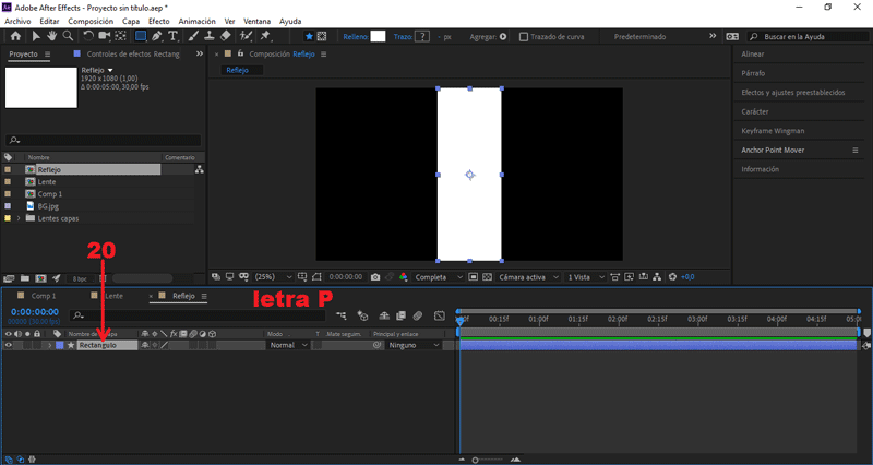 Seleccionamos la composición «Lente», presionamos la letra "P, S y R".
