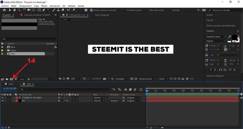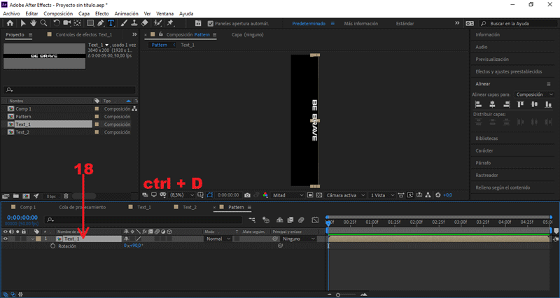 Seleccionamos la composición «Text», presionamos ctrl + D.