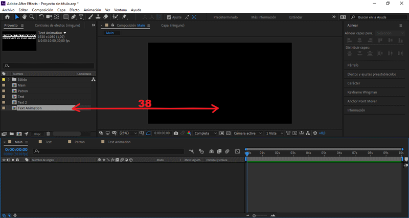 El tamaño será de 1920px x 1080px, nombre «Text Animation».