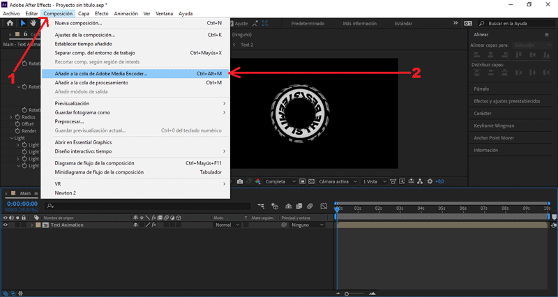 Presionamos Composición/Añadir a cola de Adobe Media Encoder...