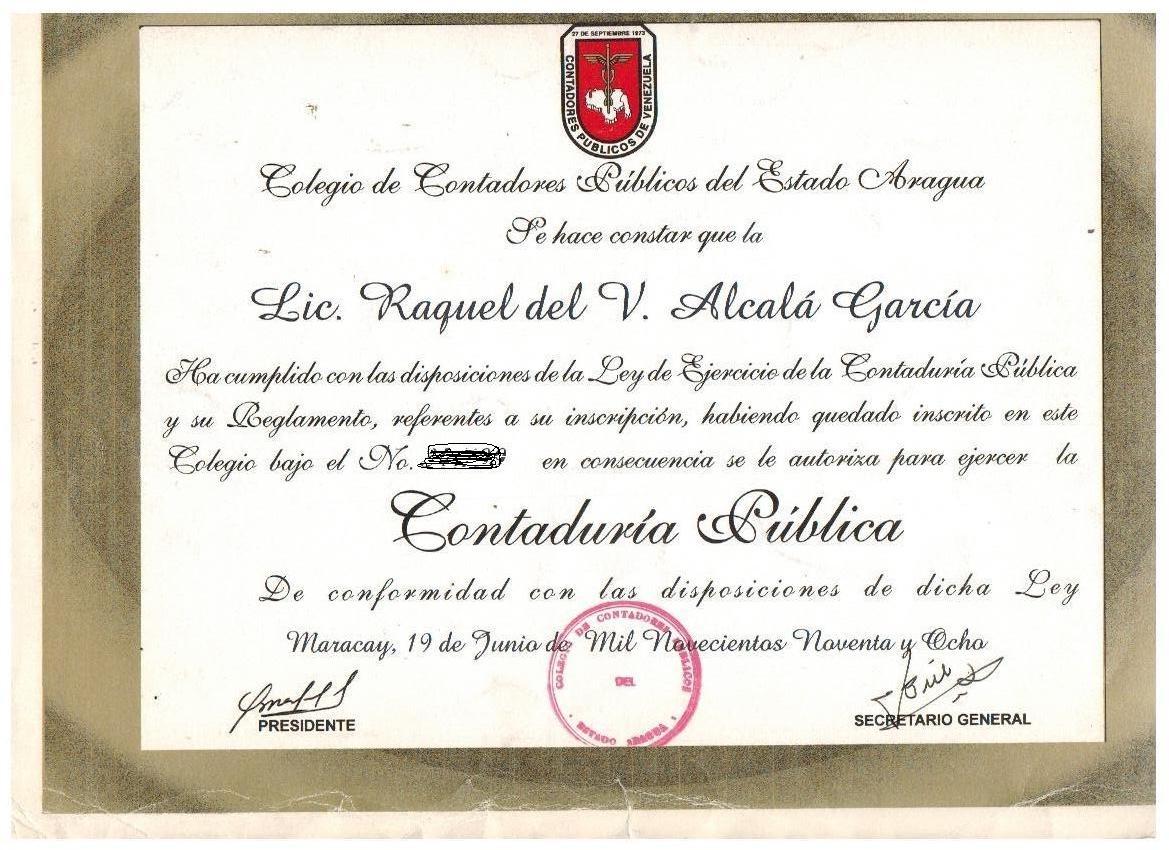 Soy Licenciada en Contaduría Publica, colegiado, con una larga carrera profesional, egresada de la emblemática Universidad de Carabobo, Venezuela.