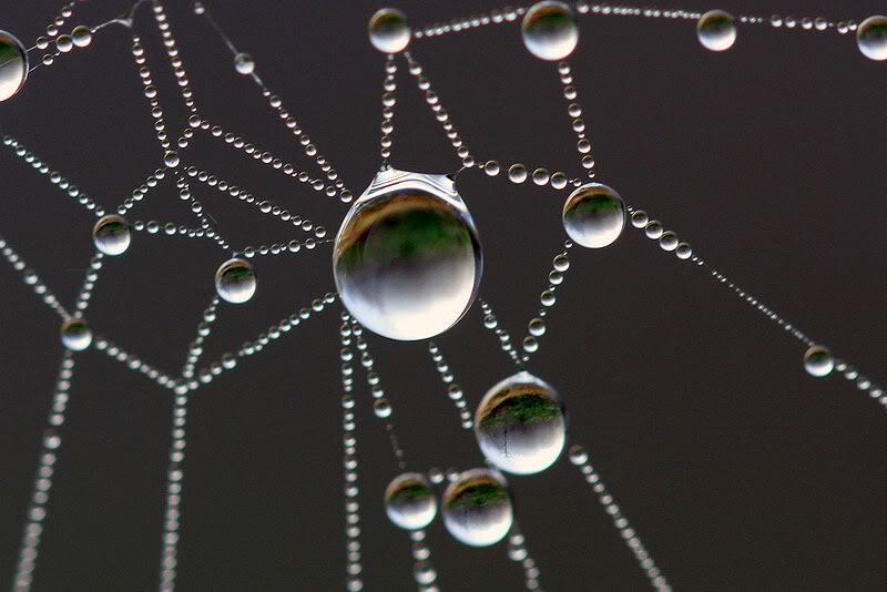 Descripción imagen: Esta tela de araña con lluvia de la noche ofrecia este aspecto sobrecogedor por la mañana