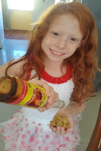 Desde pequeñita, Camila iba a mirar la preparación de las hojuelas doradas y crujientes que debía desayunar. Ya contaba ocho años de edad cuando alcanzó un tarro con miel puesto en una alhacena Ese néctar lo había visto untado en el pan, y para llevárselo puso todo su empeño y afán.