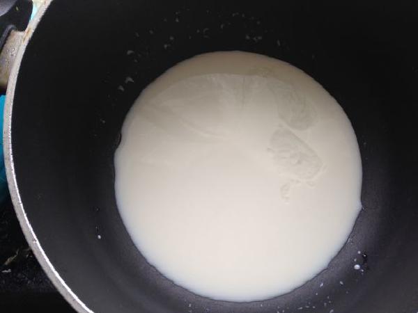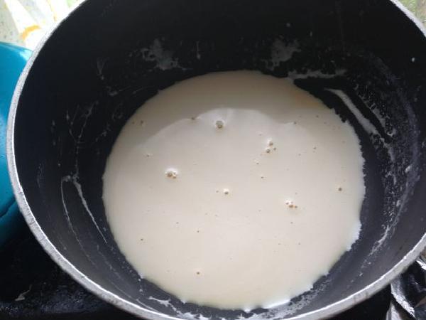 • Luego se vierte la leche en una olla y se coloca al fuego con un poco de esencia de vainilla.