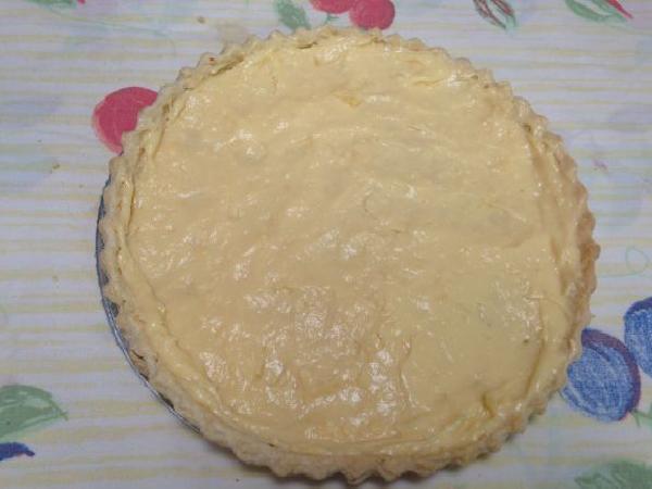 • Se estira la masa con la ayuda de un rodillo, y se coloca sobre el molde del pastel, pinchándose con un tenedor y tratando de que quede muy uniforme sobre él. Y se lleva al horno previamente pre-calentado a 120 grados por 20 minutos. (El molde debe estar previamente lubricado con un poco de mantequilla y enharinado).