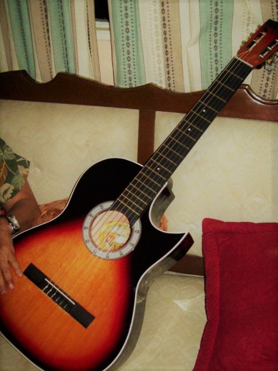 Paso muchos años en mi pared, colgada, en su forro, esperando por mi. Al principio me desmotivo mucho el dolor en los dedos y el no poder sonar medianamente decente (o puede que no sonaba tal cual como yo quería sonar). Un día, a la edad de 13 años aproximadamente, regrese a casa después de un día horroroso, que mas el drama de la adolescencia, era un día gris y patético. los problemas en mi casa nunca faltaron, siempre había una "lucha de poderes" entre los habitantes de ella, lo cual solo era leña para el fuego de los malos momentos de mi vida, mi drama y mis ganas de querer estar en otro lugar que no fuese mi casa. Ese día, como es costumbre, estaba escuchando música y escuche una canción que me ha gustado mucho desde pequeño "wonderwall - Oasis" y pensé "¿y si me la aprendo?". Busque en mi computadora los acordes y al principio, aun no podía con el rasgueo ni con la figura de los acordes, pero al darme cuenta, habían pasado muchas horas mientras lo intentaba y a pesar de los intentos fallidos, me estaba divirtiendo, estaba entrando a un mundo que había esperado por mi durante años colgado en la pared. Desde ese día y con mucha practica, logre hacer la música que me hacia falta, canciones que hablaran de como me sentía y si en algún momento me sentía igual, ellas estarían para mi para recordarme que siempre hay un mañana. Las canciones de amor y de otros temas no se hicieron esperar, pero siempre estaré orgulloso de mis canciones para mi, para sanar. Quien sabe, a lo mejor pueda ayudar a alguien mas que pasara por lo mismo que yo.