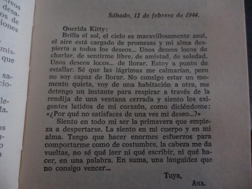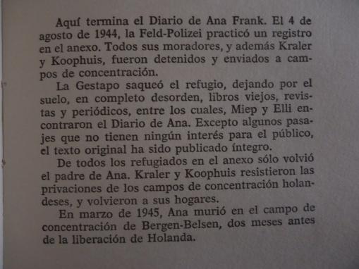 Este libro sin duda es una reliquia de la historia, lo mas hermoso que se puede sacar de leerlo es que Ana solo era una niña en una gran situación de desesperanza que nunca decayó, para cualquiera vivir en esas circunstancia seria sinónimo de angustia, sin embargo ella siempre fue positiva y mantuvo siempre la esperanza de volver a su vida normal.