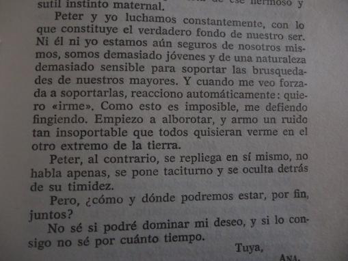 Si me pongo a pensar en la forma en que vivimos aquí, llego casi siempre a la misma conclusión: comparados con los judíos que no están escondidos, nosotros debemos considerarnos en el paraíso. Sin embargo, más tarde, cuando todo retorne a la normalidad y habitemos, como antes, nuestra casa decentemente arreglada, no podré dejar de asombrarme al recordar hasta qué punto hemos descendido.
