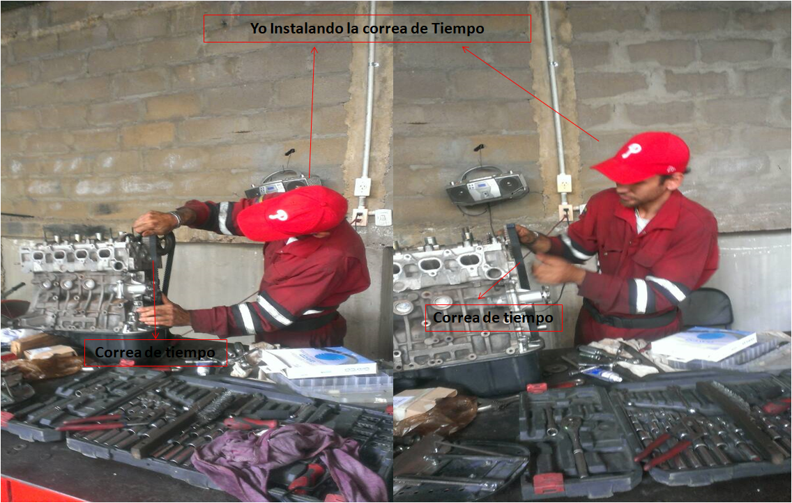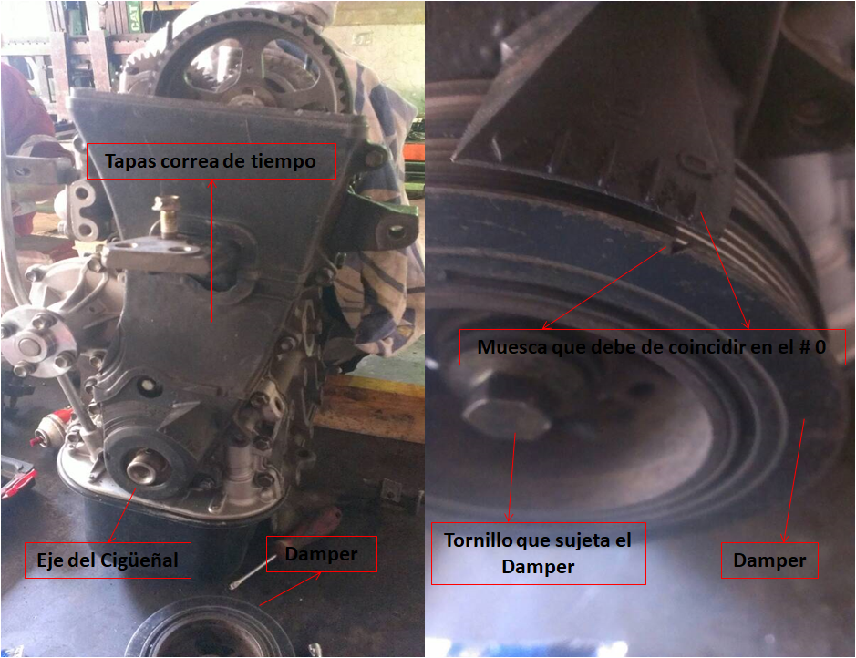 Aquí ya el motor esta en tiempo exacto para la instalación de la correa de tiempo y el tensor