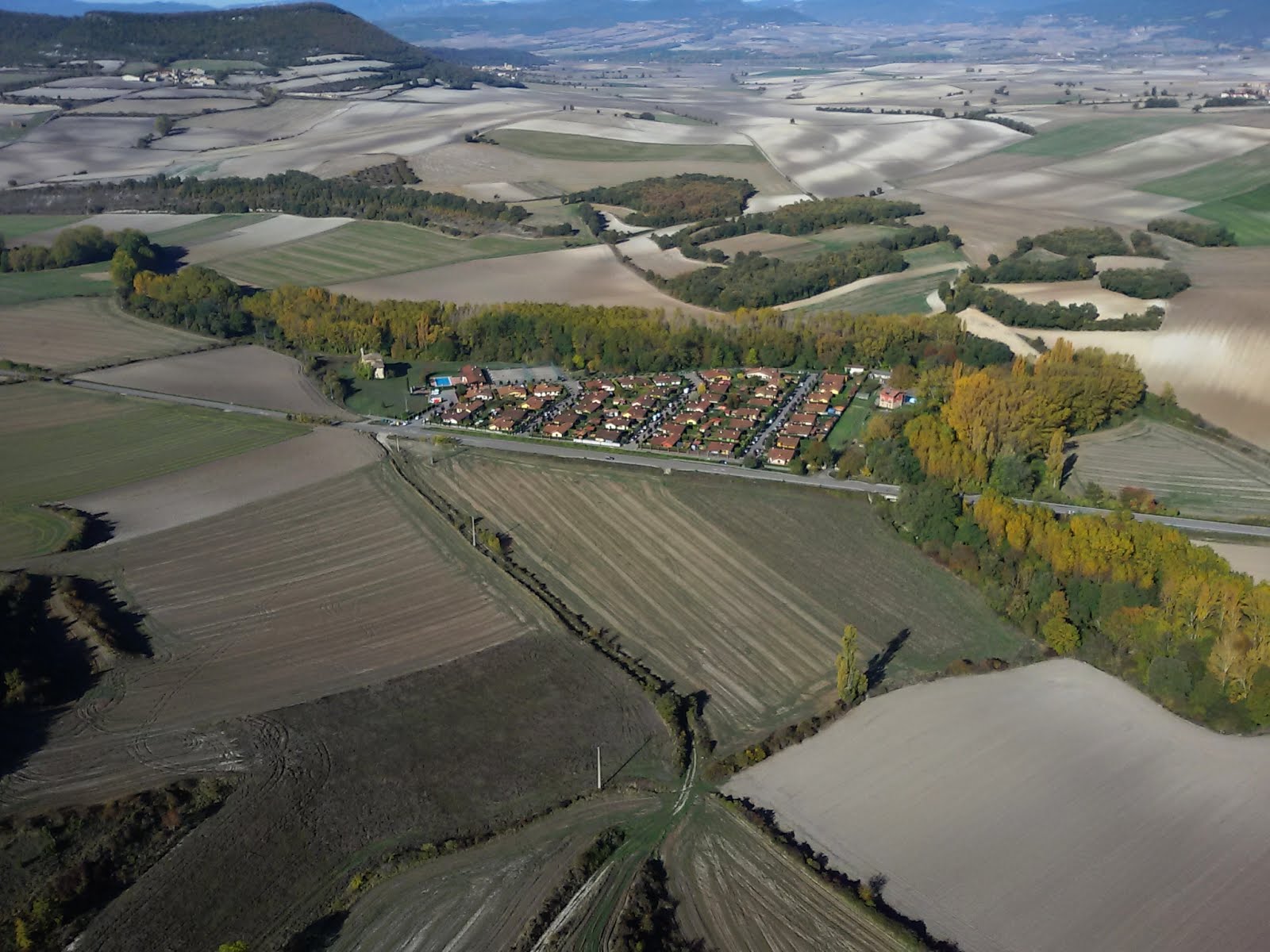 Pocos minutos después llegamos al pueblo de La Vid de Bureba, y desde aquí ya apreciamos el gran hangar del aeródromo, un poco por encima y a la derecha del pueblo.