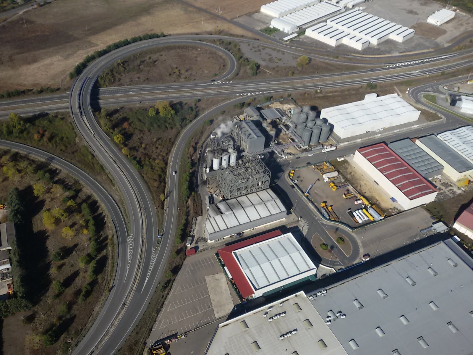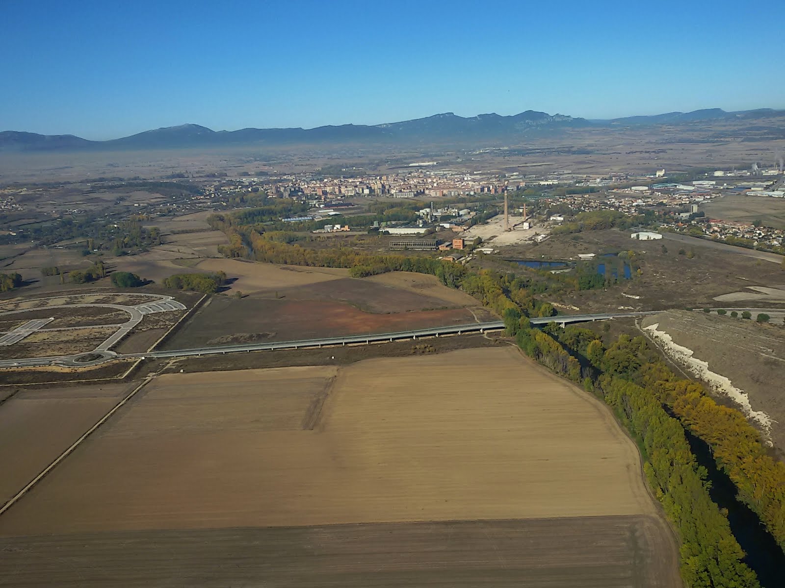 Paisaje industrial, cemento y asfalto, autopistas y fábricas, entre Miranda y Zambrana.