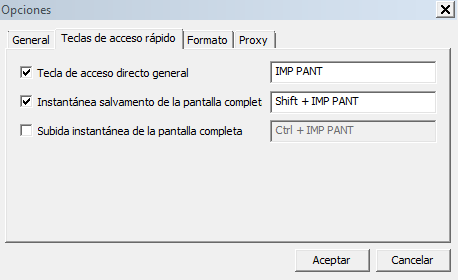 Si le da en opciones se abre una ventana de configuración donde puede cambiar los atajos y las teclas de acceso rápido