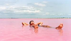 al lago su característico tono rosado pero no piensen que el agua de este lago tiene el color de un