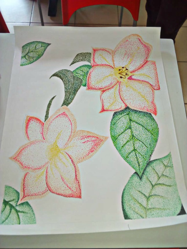 Esta técnica consiste en la aplicación de puntos en el papel he ir dando la forma de las figuras, realmente estoy contenta con el resultado. 😄😄
