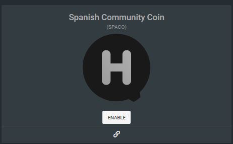 No aparece porque SPACO no está habilitado en la página de Tribus de SteemPeak: