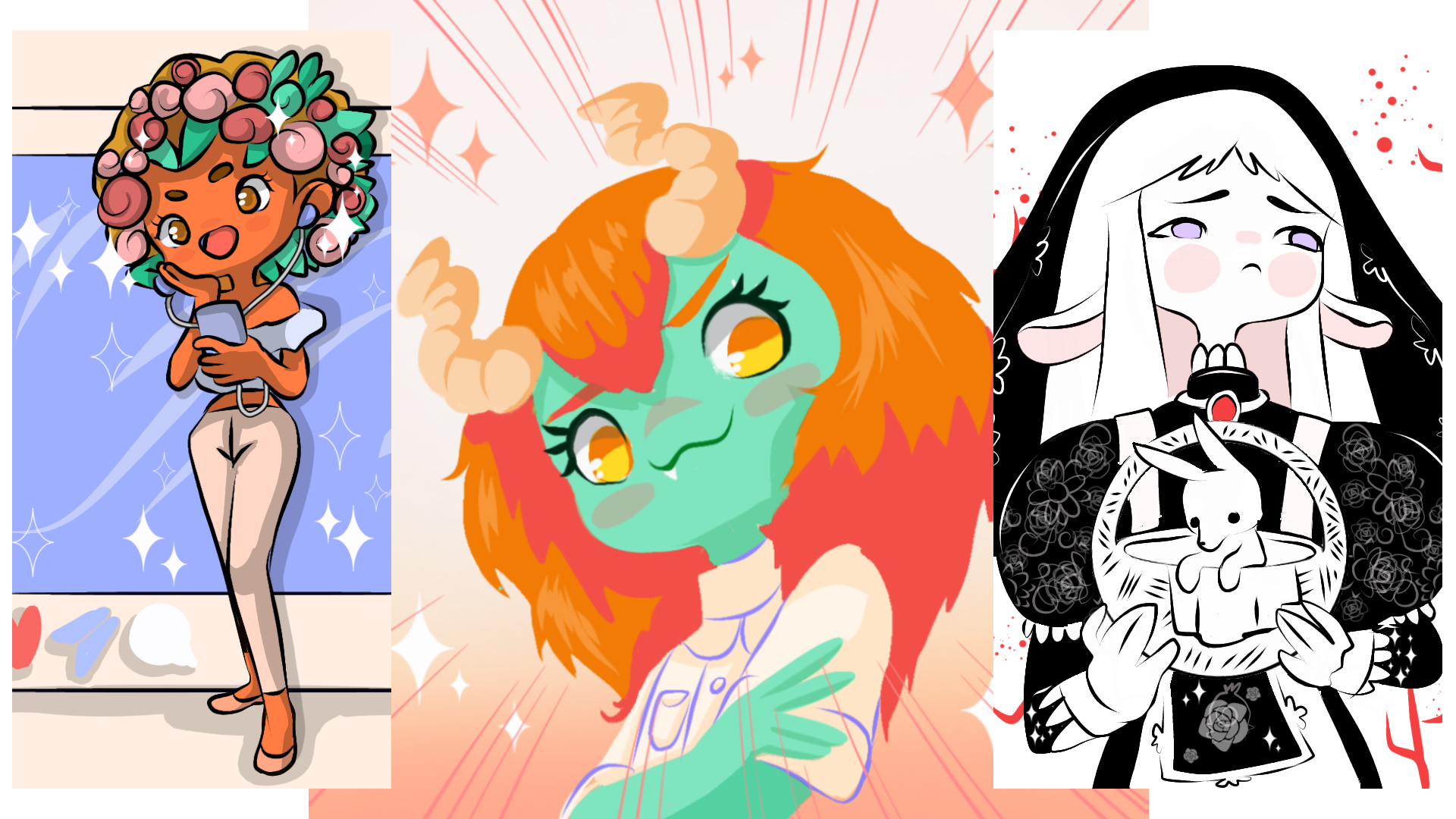 En esta ocasión tenemos a tres chicas muy peculiares y muy diferentes, espero que disfruten de los dibujos terminados y de los procesos.