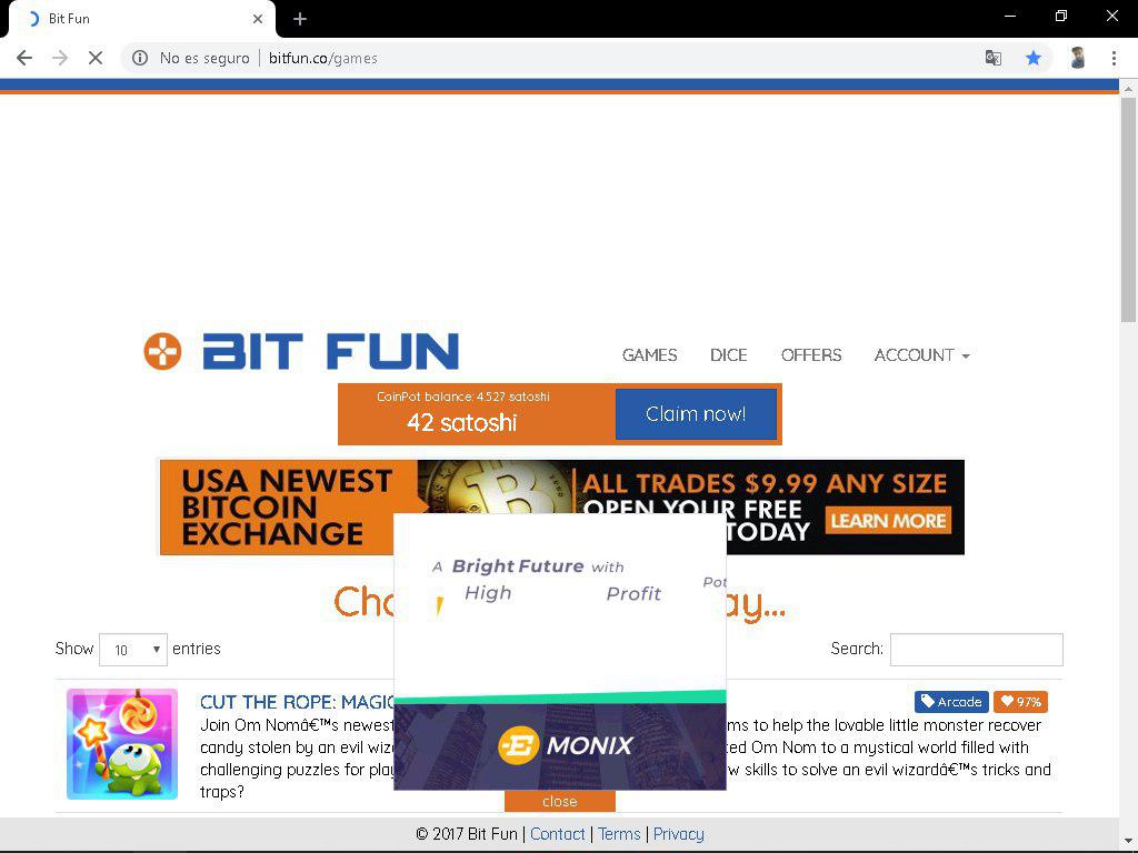 Otras FAUCETS aparte de las MOON que podemos utilizar para reforzar nuestras ganancias de BTC, son las siguientes, BITFUN que puedes retirar cada vez que desees y BONUS BITCOIN---> Esta faucet podras realizarla cada 15 minutos recibiendo entre 5 y 15 bitcoin cada 15 minutos, solo debes colocar el escrito, le das CLAIM y listo, esperas tus 15 minutos y vuelves a hacerlo, recuerda que teniendo el monedero de COINPOT aqui en BONUS BITCOIN y BITFUN, por cada retiro recibiras TOKENS COINPOT, solo deberas colocar tu correo y una contraseña, como en las MOON.