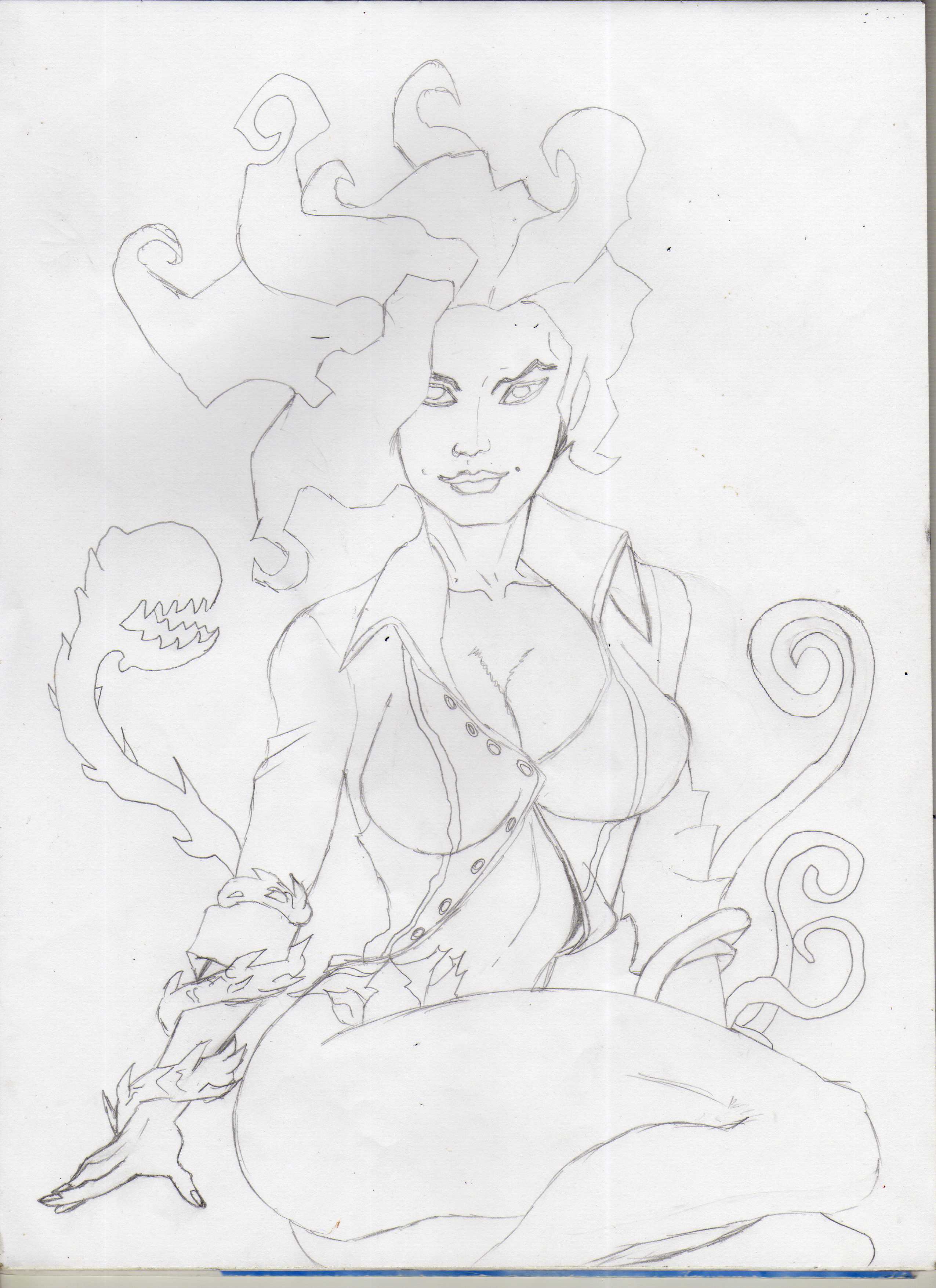 Luego dibujo el cuerpo de la hiedra venenosa, tengo que corregir su pecho porque la hago demasiado grande XD, yo usé líneas curvas para su cuerpo su trasero y sus piernas.