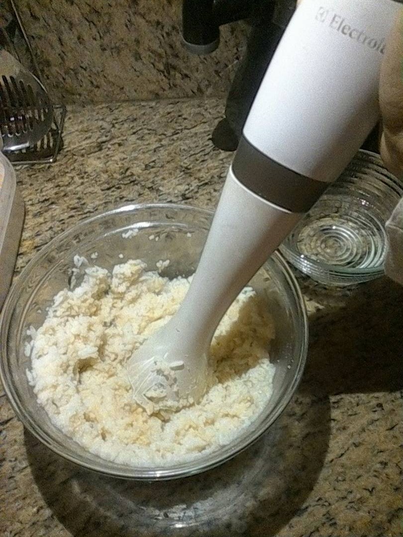 Lo primero es licuar el arroz con un poco de agua hasta tener una mezcla homogénea (puedes usar una licuadora normal o una de mano como la que se observa en la foto).