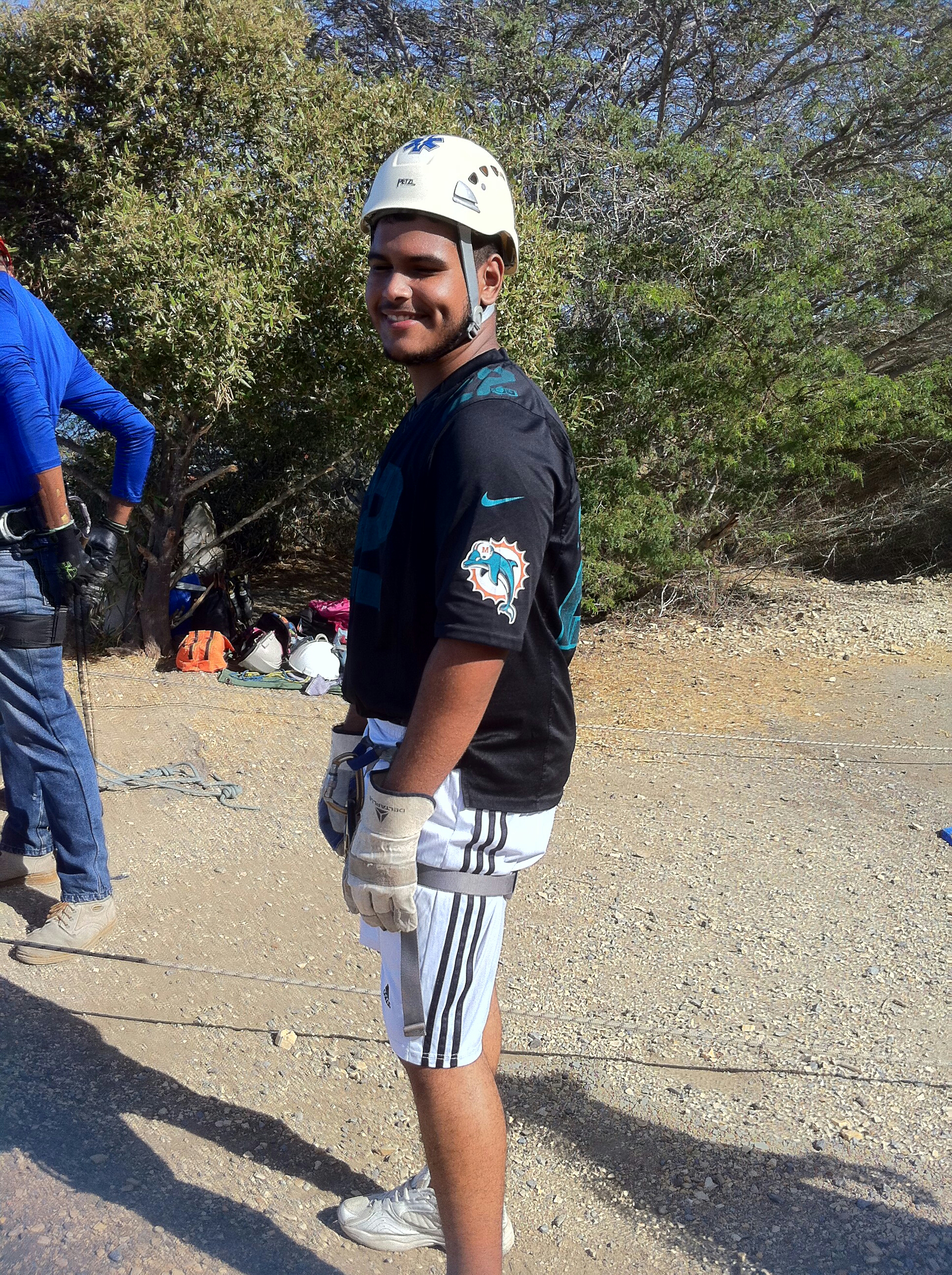 Mi novio por el contrario estaba super animado al comienzo y al descender se enredo un poco con la cuerda, pero igual completo el reto.