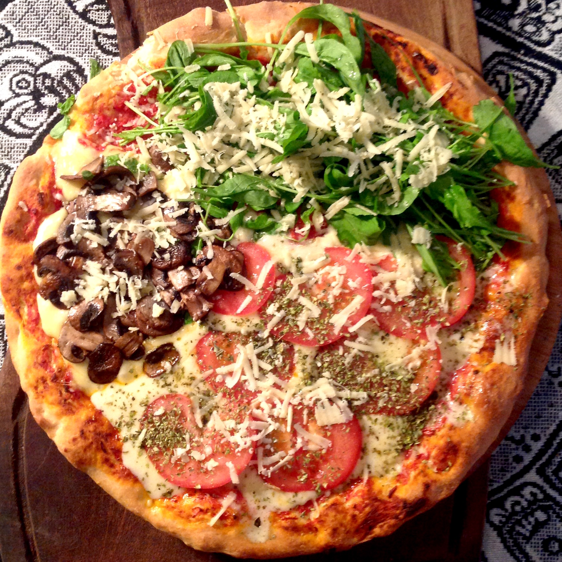 Pizza a los tres gustos vegetariana: