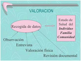 Valoración: recogida deliberada y sistemática de datos que conciernen a la persona, familia y entorno. Son la base para las decisiones y actuaciones posteriores.