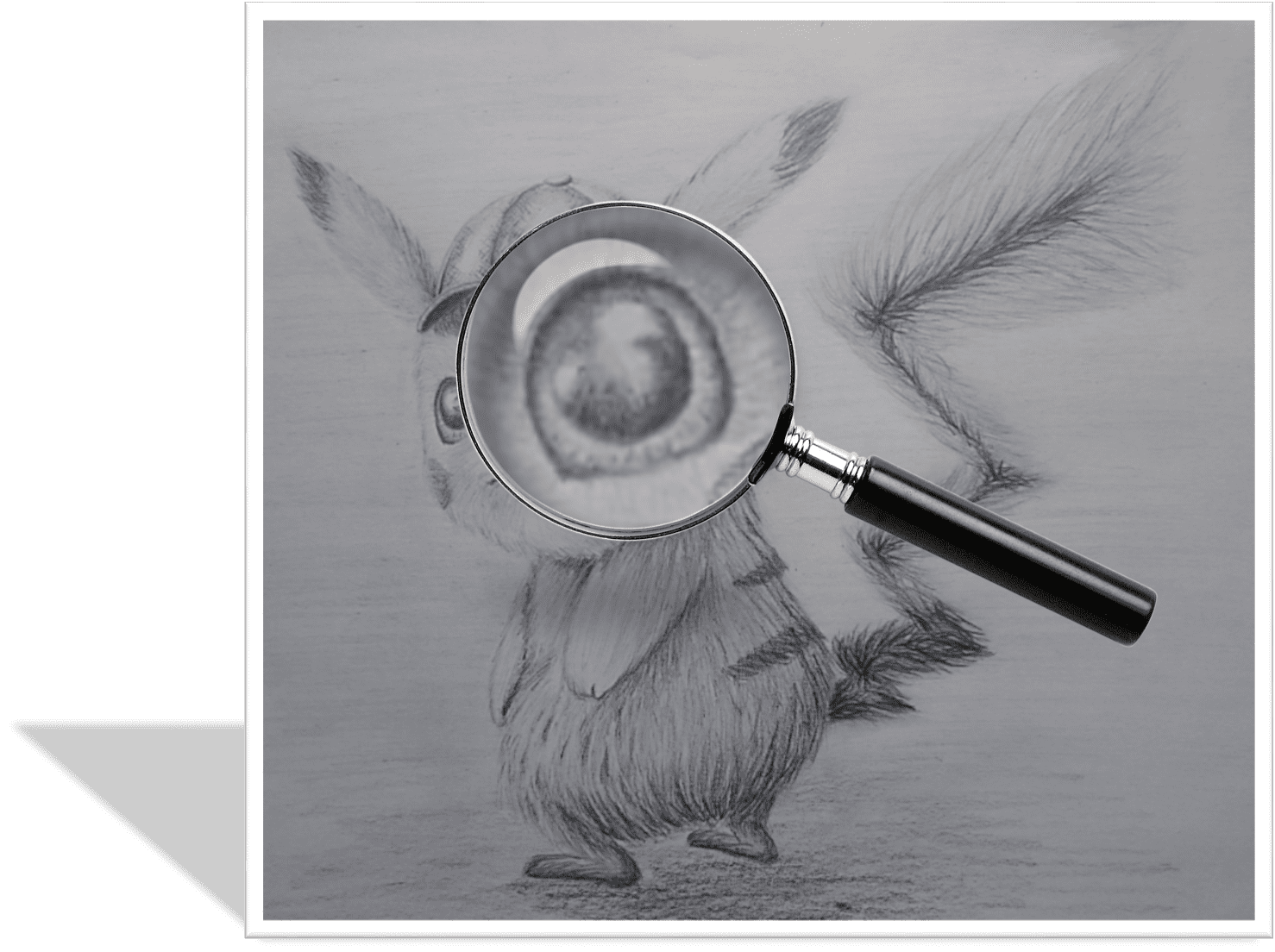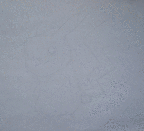 Como ya he venido mencionando el paso principal es el boceto, tomamos medidas y determinamos las proporciones del cuerpo y la cabeza para que haya sintonía en la morfología del Pikachu, realizamos líneas suaves con el lápiz 4H para dibujar todo el cuerpo, ya teniendo estas líneas guías empezamos a rellenar todo con pequeños trazos uno a uno usando el lápiz HB, así creamos una base de su pelaje, continuamente utilizamos los lápices 2B hasta el 6B respectivamente para ir obteniendo las zonas de sombras y para aportar volumen usando la técnica antes mencionada. Detalles como los ojos, nariz, boca y gorra, bien pueden dejarlos a lo último, en mi caso decidí hacerlos a medida que iba avanzando en la ilustración, pero siempre corrigiendo sombras y brillos porque en el proceso estos pierden nitidez. Como recomendación es mejor dejarlos para el final.