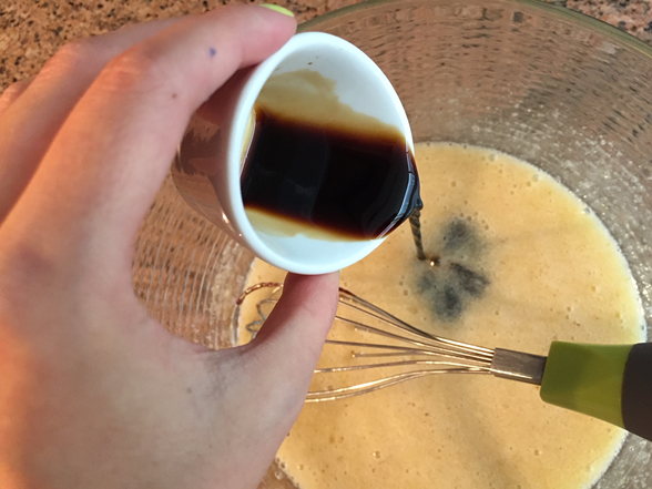 Añadimos la esencia de vainilla, y seguimos mezclando durante unos minutos más.