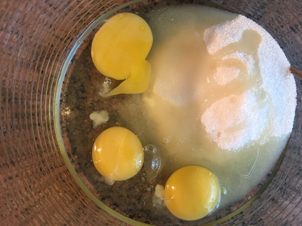 En un bowl grande vamos a batir durante 5 minutos el azúcar con los 3 huevos.