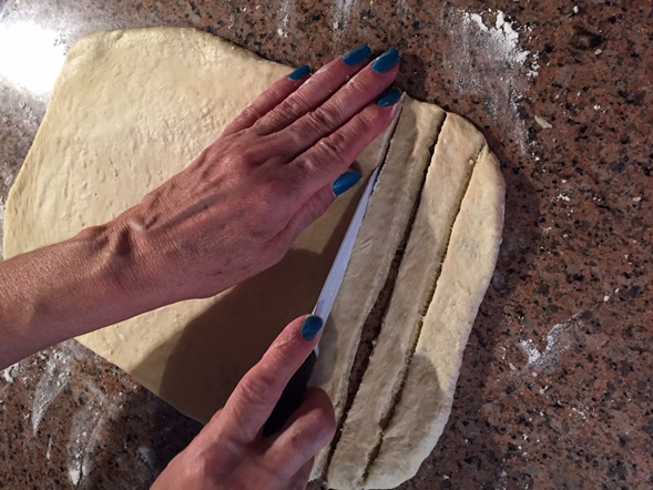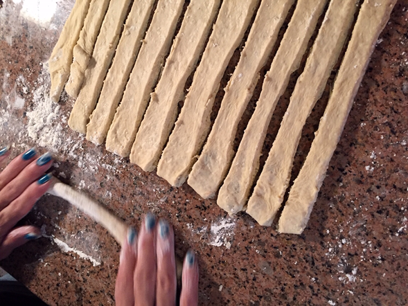 Cortamos tiras de dos dedos de grosor.