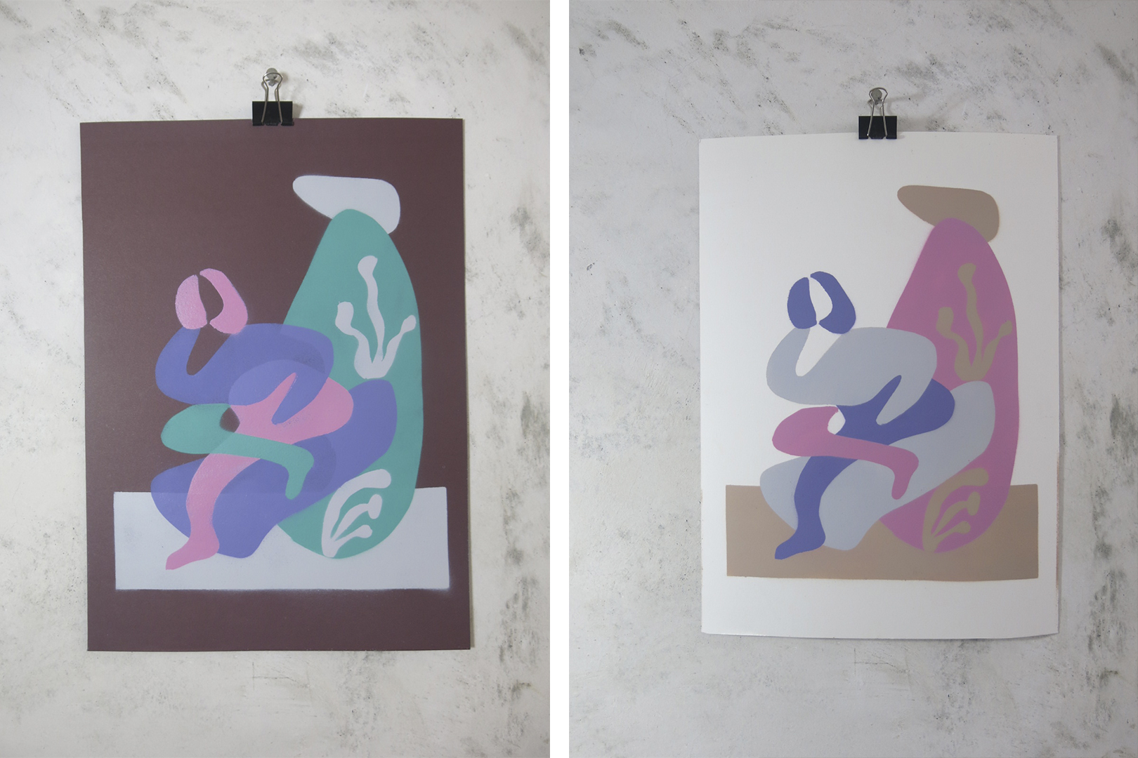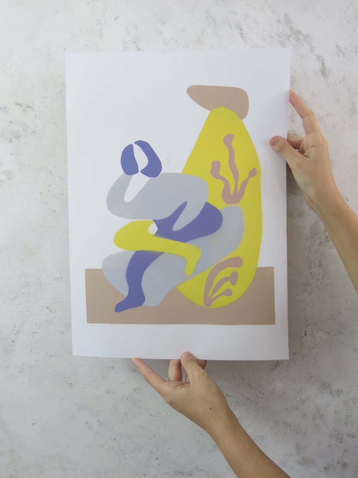 #3 Finalmente dividí el boceto por colores y realicé un stencil de cada color. Los pinté con pintura de spray MTN sobre papel de algodón