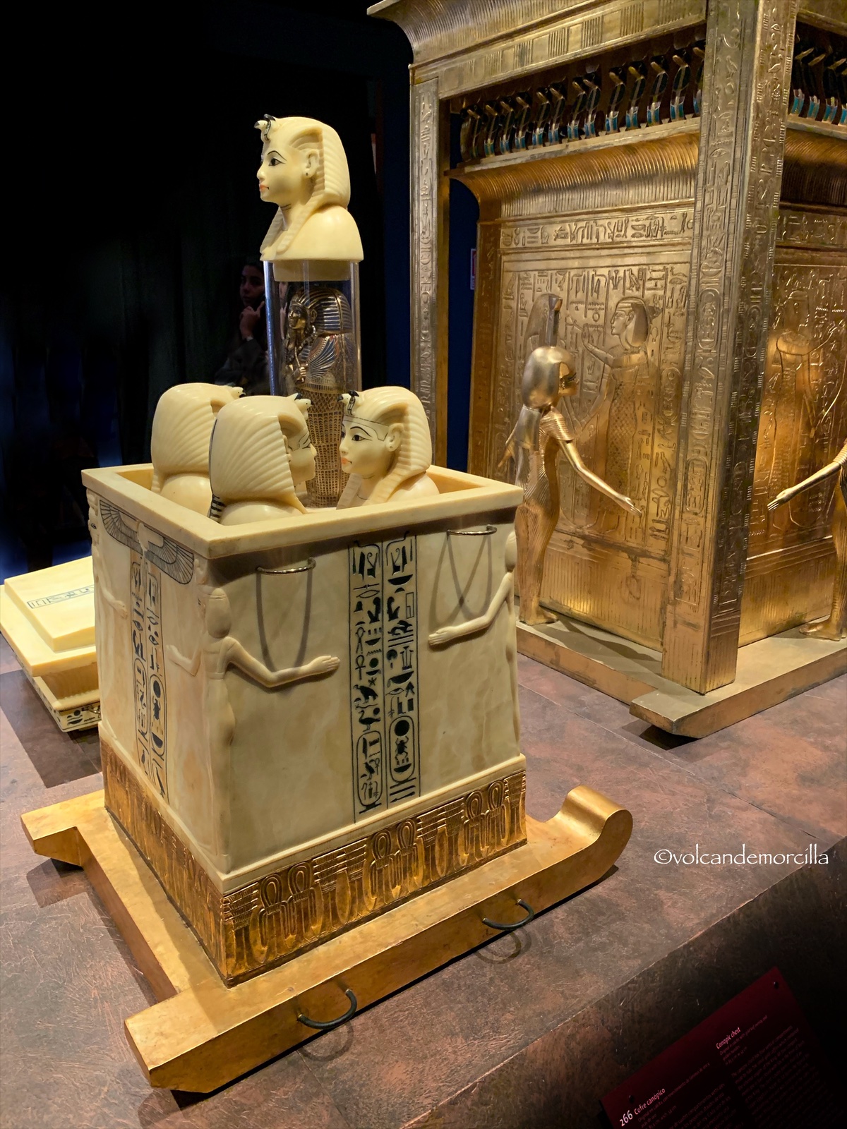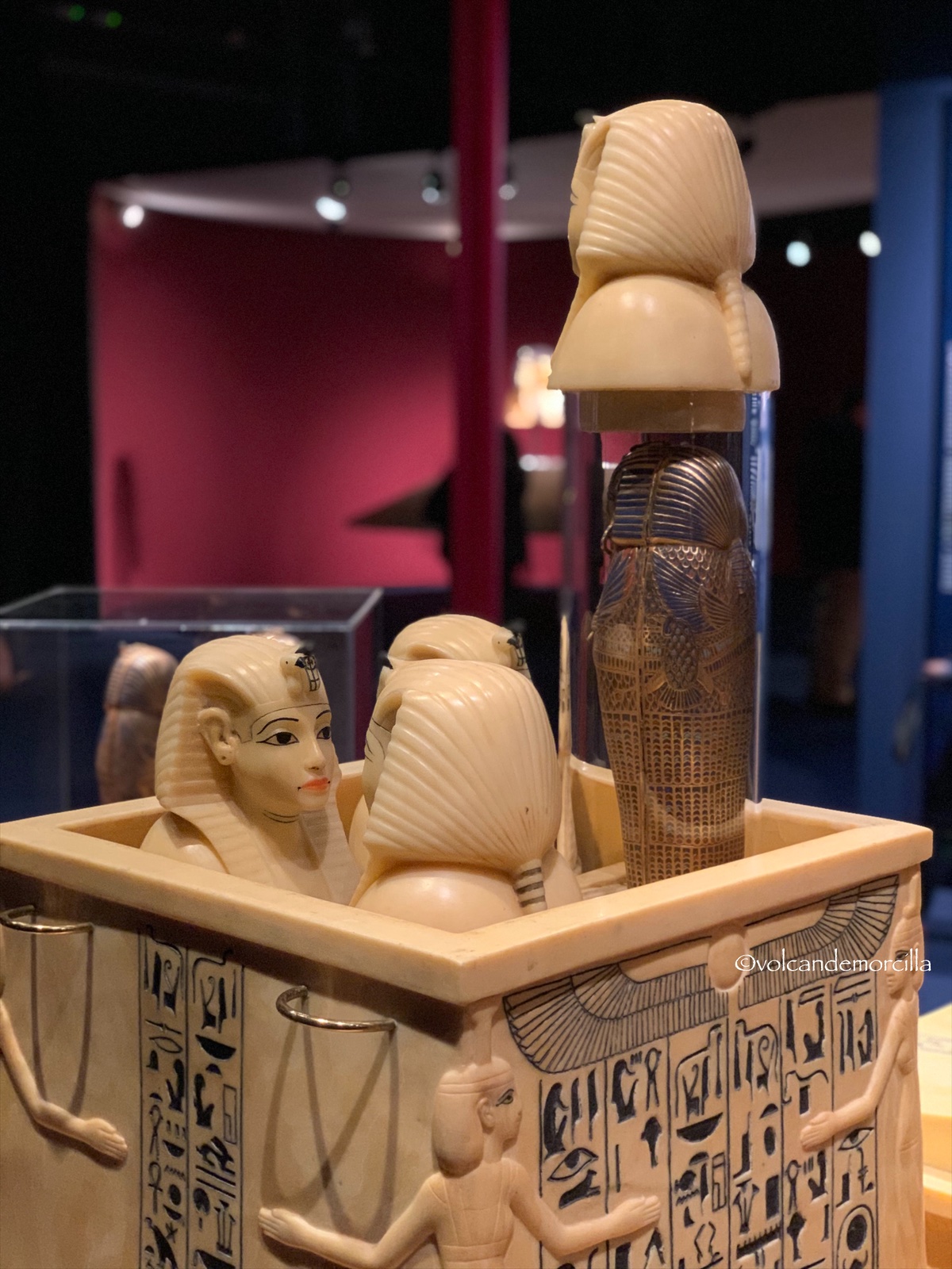 En esta muestra, realizada con gran detalle, se ha hecho una recreación minuciosa de muchas de las cosas descubiertas en la tumba de Tutankhamón. Entre los hallazgos más interesantes están los vasos canopos.