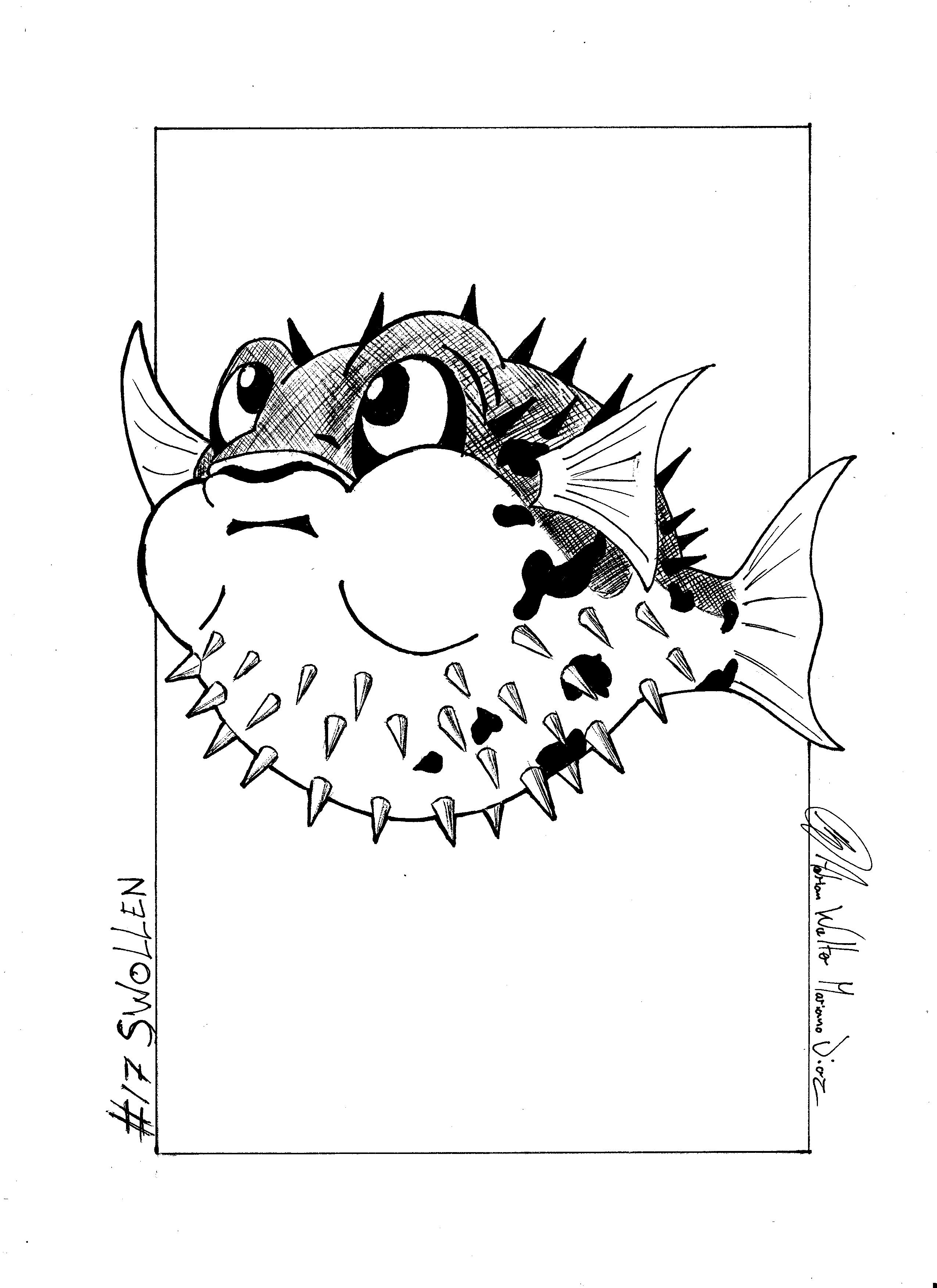 Día 17 swollen (inchado) esto lo pensé bastante por que no se me ocurría nada, hasta que vi la imagen de un pez globo.
