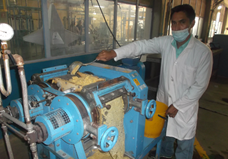 Terminada la fase de laminación, las hojuelas entran a un banco de molinos a fin de ser sometidas a un proceso de desintegración. Los cortes y cizallamientos provocan la fragmentación de las hojuelas, transformándolas en harina. Este producto es enviado a un sistema de tamizado, el cual está compuesto por una serie de mallas construidas en acero inoxidable grado sanitario con aberturas de diferentes diámetros. De este modo, el producto se clasifica y se envía a los silos de harina terminada.