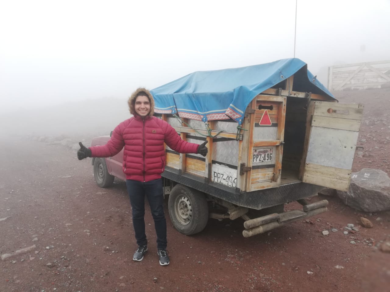 Mi viaje a este imponente paisaje, comenzó desde la ciudad de Ambato, como la mayoría de mis viajes fue de mochilero, nos fuimos en un autobus hasta la ciudad de Riobamba, y luego en el terminal otro autobus que se dirigía a Guaranda, este último bus nos dejó justo la entrada del Chimborazo, apenas nos bajamos de ese bus fue realmente impresionante la neblina y además el frío que había, casi no podíamos ni ver de la cantidad de neblina en el ambiente, para subir se puede hacer caminando, o también en unas camionetas que te llevan hasta el primer refugio, nosotros esta vez elejimos el camino más fácil que era irnos en camioneta, ya que era la primera vez que íbamos y además para ser sincero, yo estaba que no aguantaba el frio.