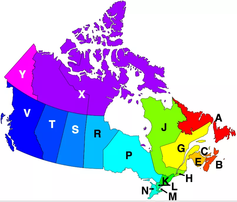La razón es que los 3 primeros caracteres dan una idea de dónde se encuentra la dirección a nivel nacional, y los últimos 3 a nivel local. En general, cada provincia tiene una letra; excepto Quebec y Ontario, cuya densidad poblacional les da 3 y 5 letras a cada uno, y Nunavut y los Territorios del Noroeste, que comparten la letra “X”:
