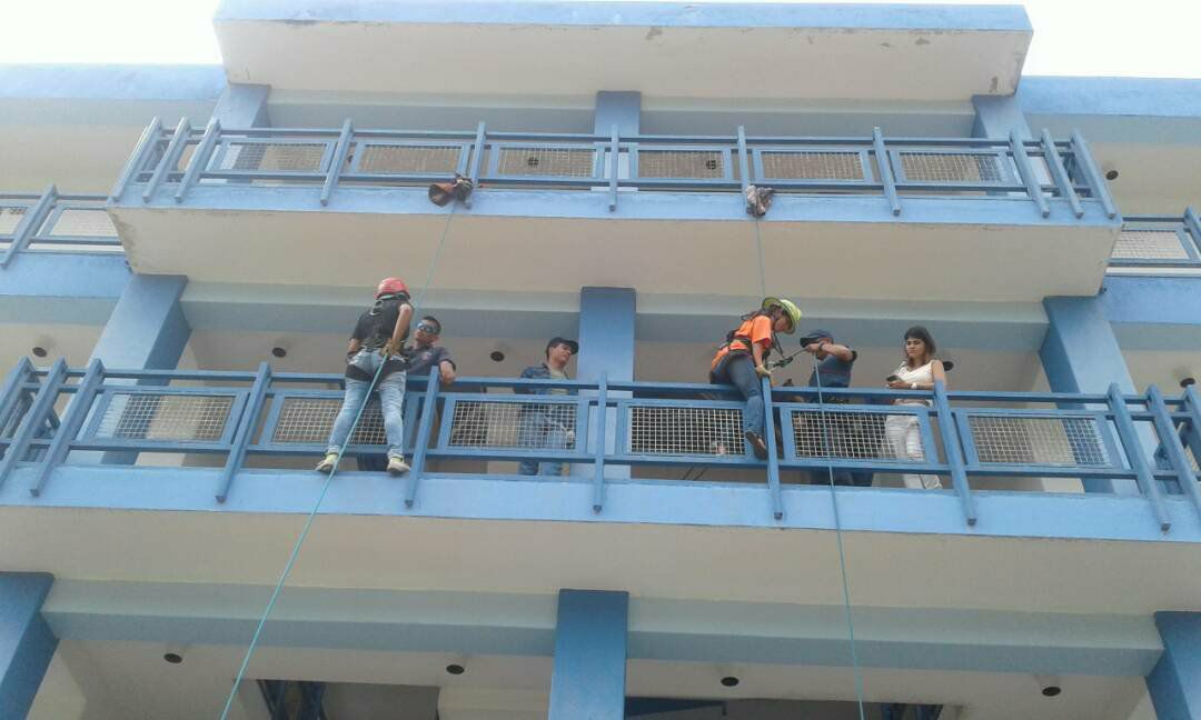 Y luego tocó el momento de descender, no era muy alto, ya que la mayoría éramos nuevos en el tema, bajamos por un edificio de 3 pisos, y utilizamos un cuerda de seguridad por si acaso alguno se soltaba los bomberos que estaban prestando apoyo nos lograran sujetar.