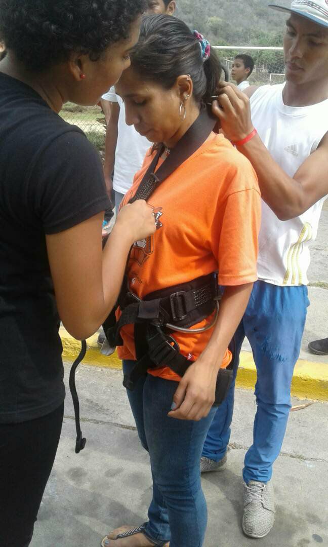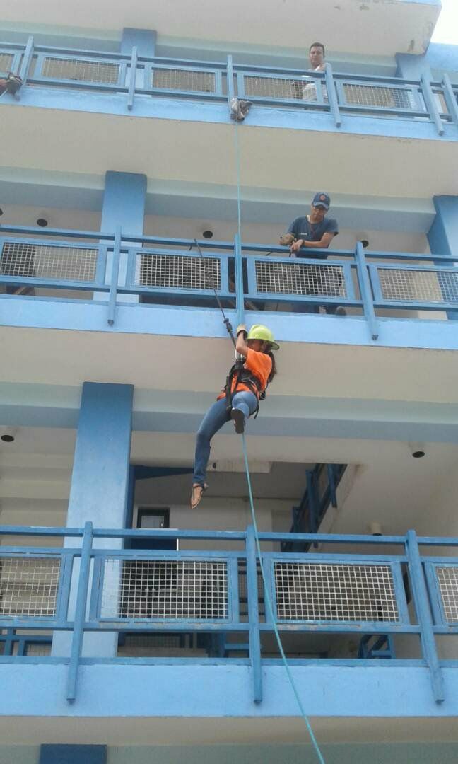 Cuando fue mi turno de descender yo estaba muy aterrada, tanto que no podía soltarme de la baranda luego pensé ya estoy aquí no puedo arrepentirme y agarre un poco más de confianza y decidí continuar, y fui bajando muy lentamente, hasta que llegue a una parte donde no había pared y prácticamente quede colgando en la cuerda, comencé a gritar del miedo ( recuerdo que me sentí como una piñata balanceándose allí), por suerte uno de los bomberos me estaba apoyando y me decía que tuviera confianza que no me pasaría nada y que siguiera bajando.