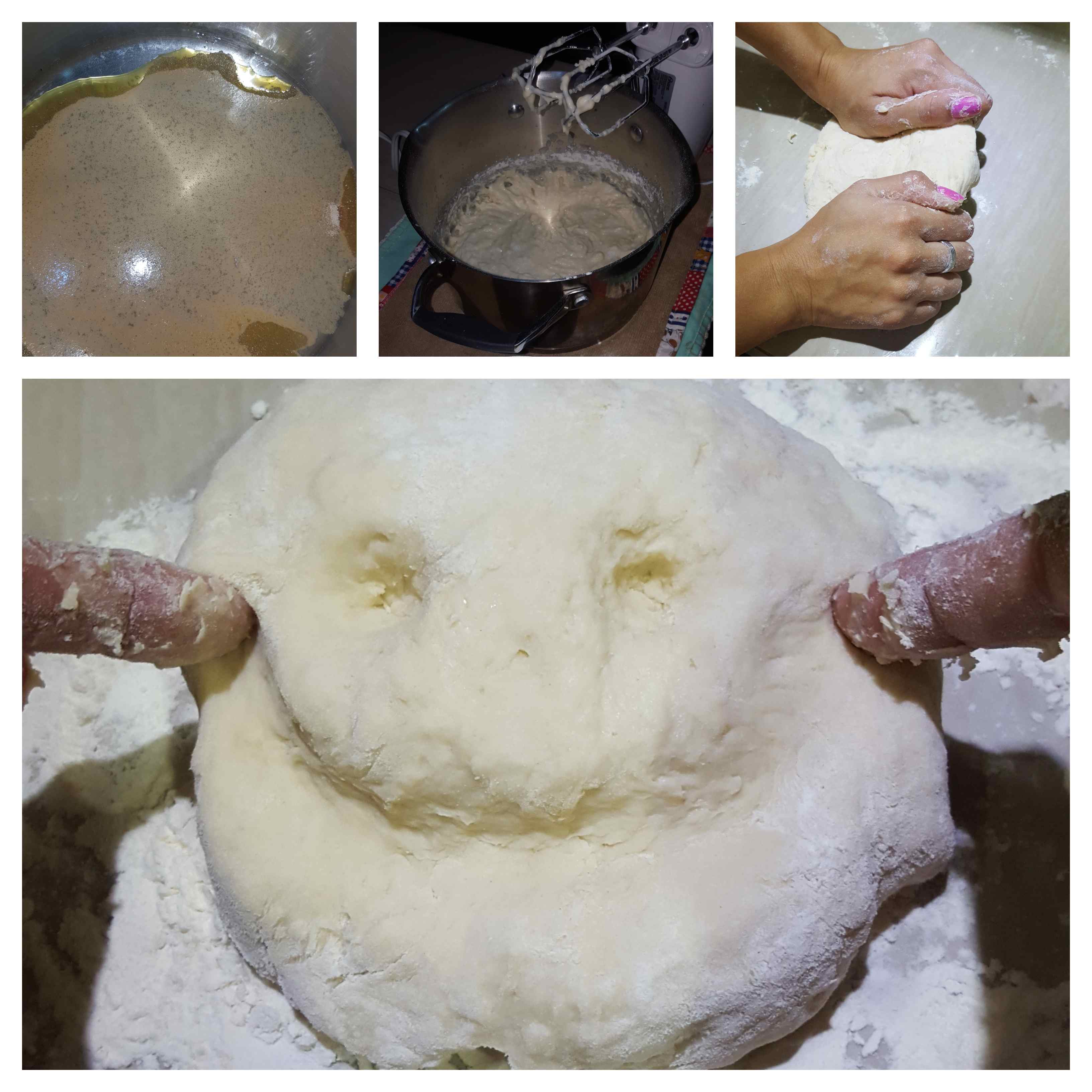 Es muyyyyy sencilla de hacer. En un bol colocamos agua tibia, con el aceite y espolvoreamos la levadura. Dejamos reposar unos 3 minutos, luego mezclamos y añadimos la harina y la pizca de sal. Mezclamos ligeramente con la batidora para evitar grumos. Luego que la masa tenga cierta consistencia pegajosa, procedemos a colocarla en un mesón para amasar muy bien, cuando este lista dejar reposar una hora aproximadamente.