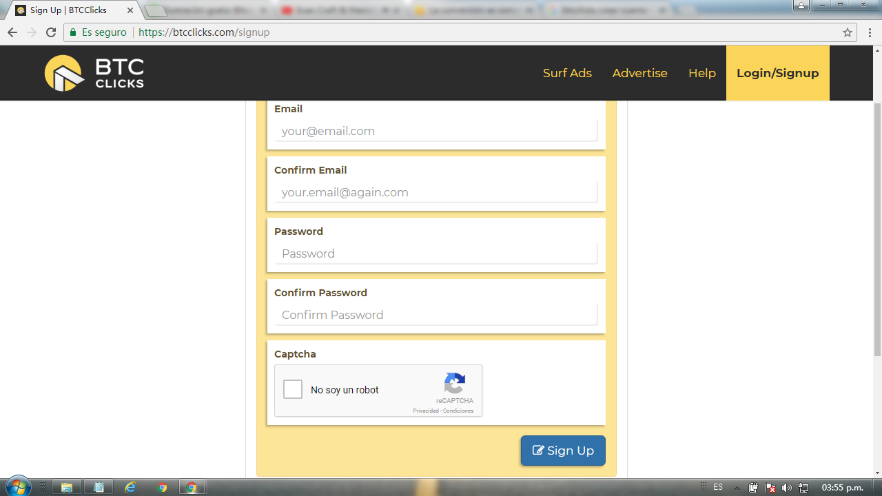- Lo primero que debes hacer ingresar a la página de BTCClicks y crearte una cuenta allí, Ingresan en la parte superior derecha de la página y le dan click en Earner Signup