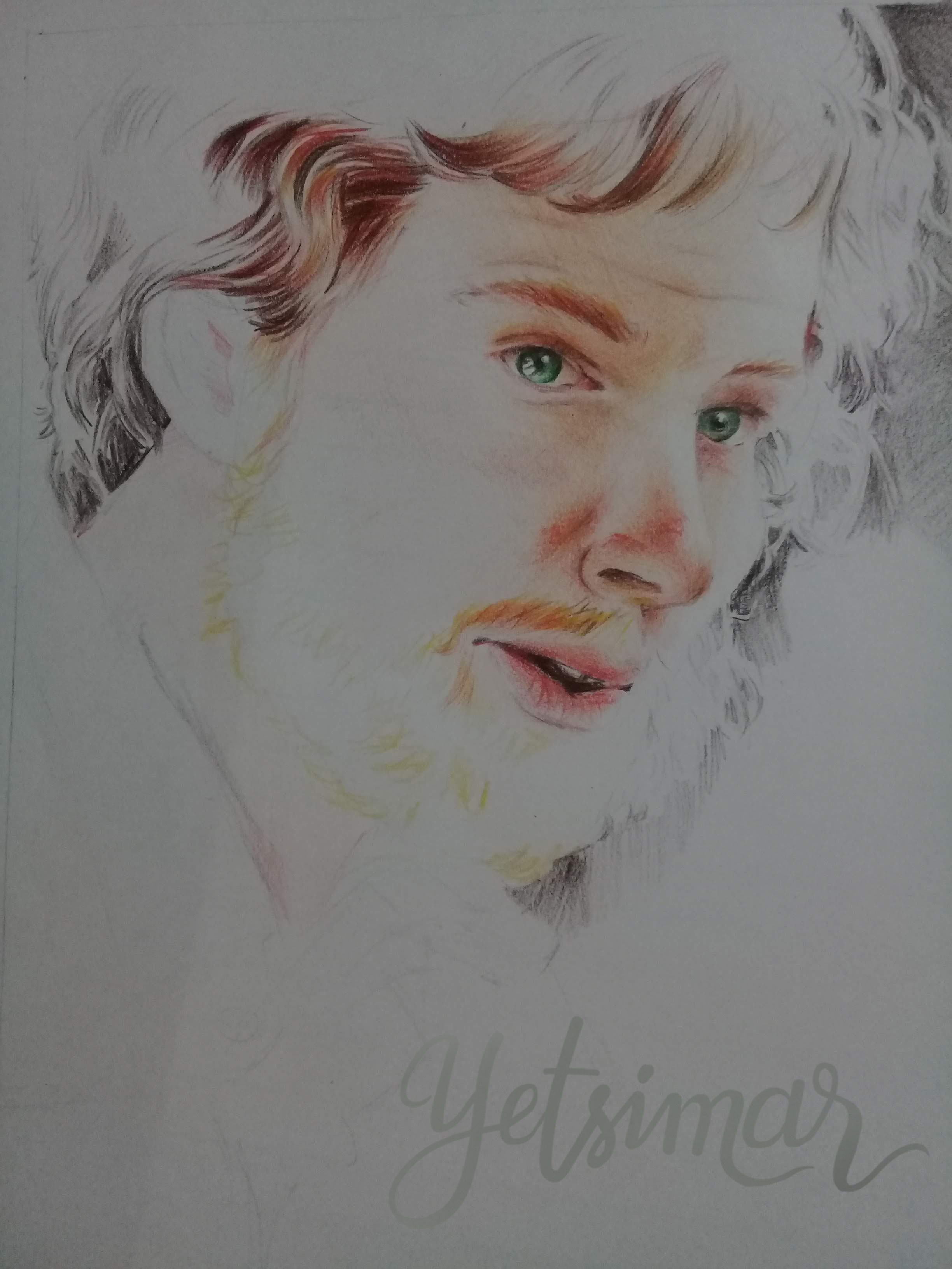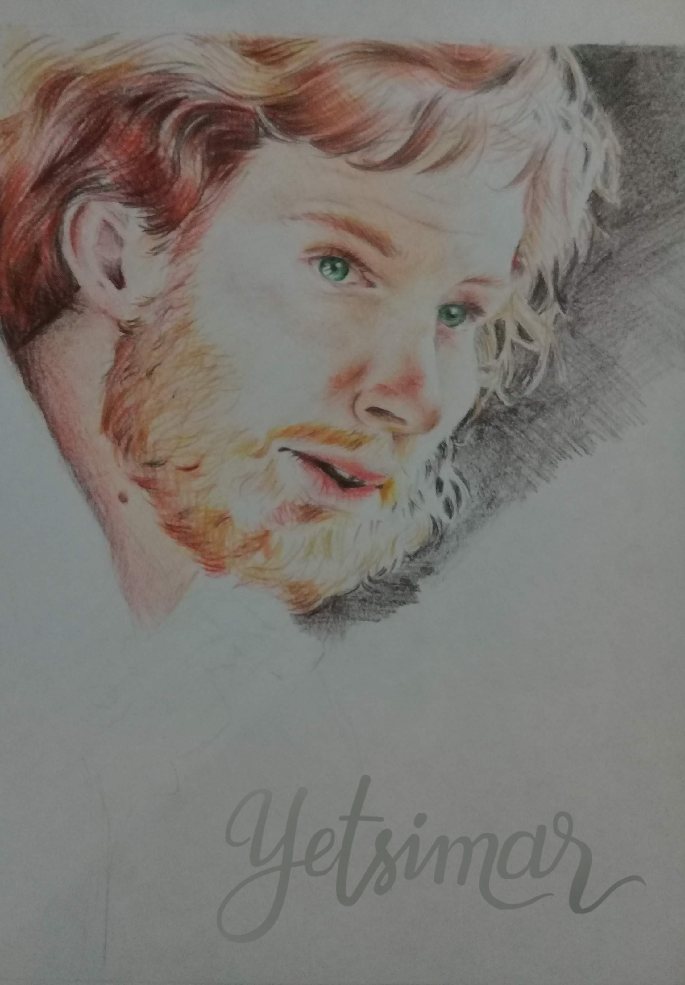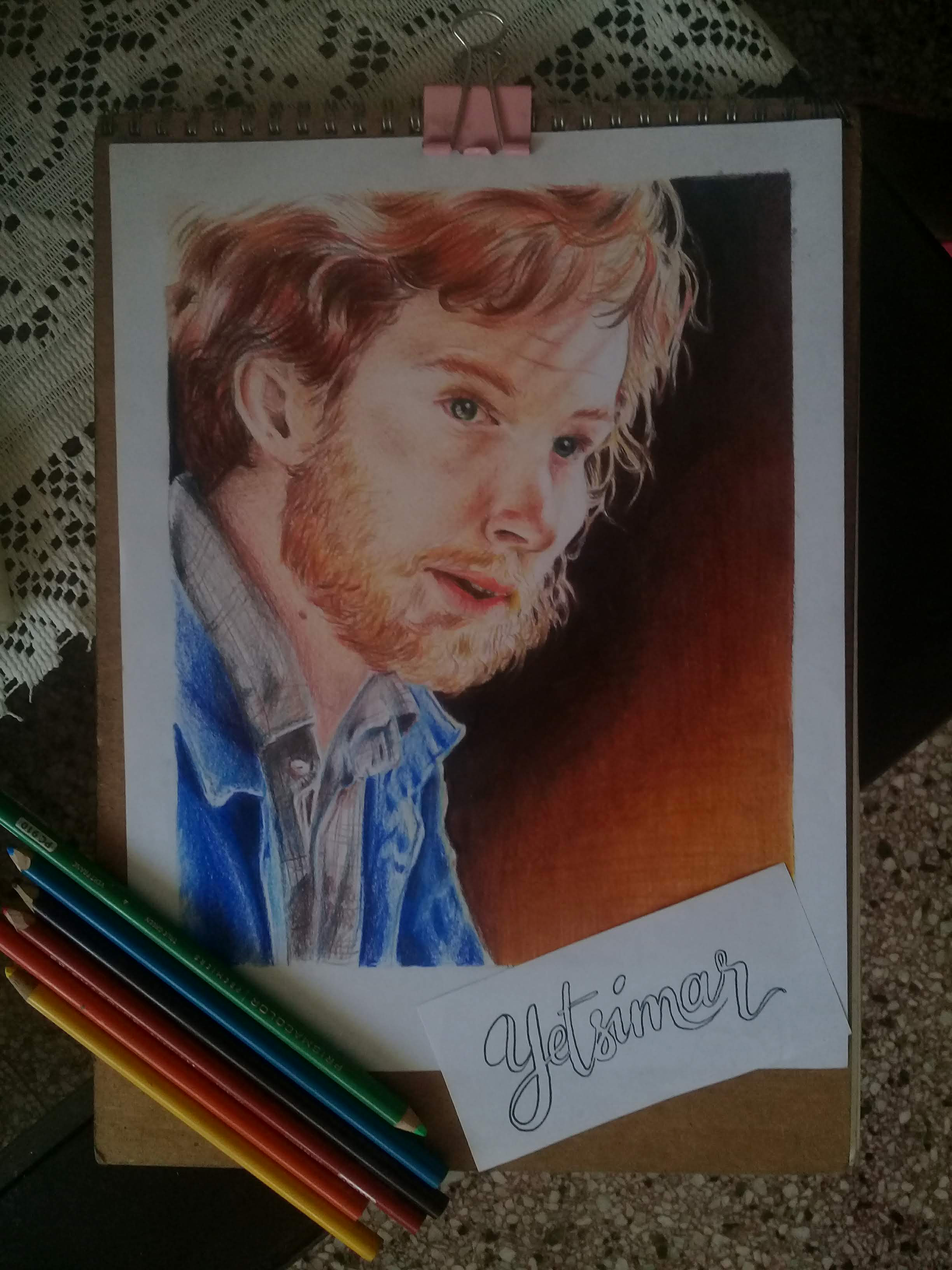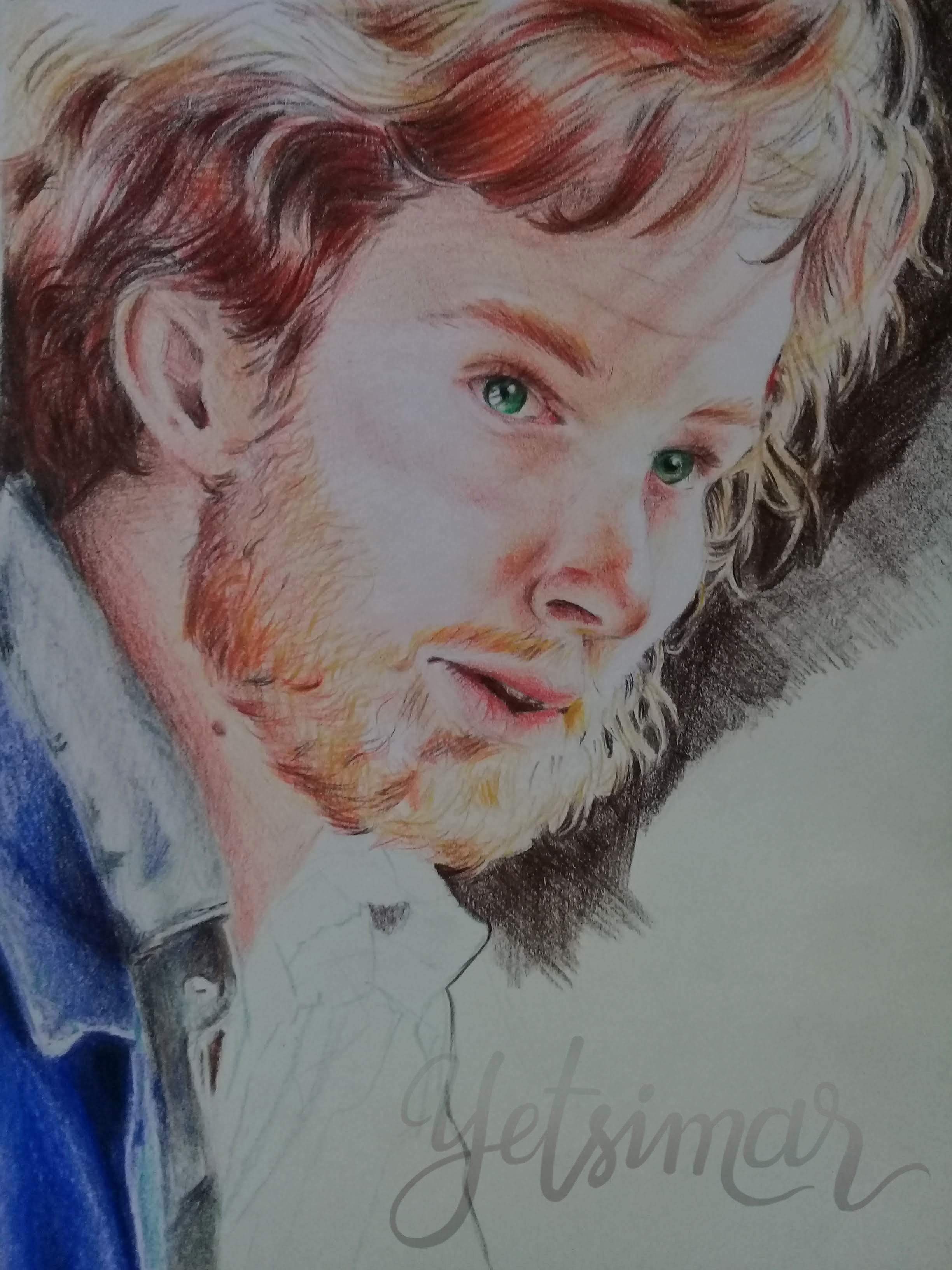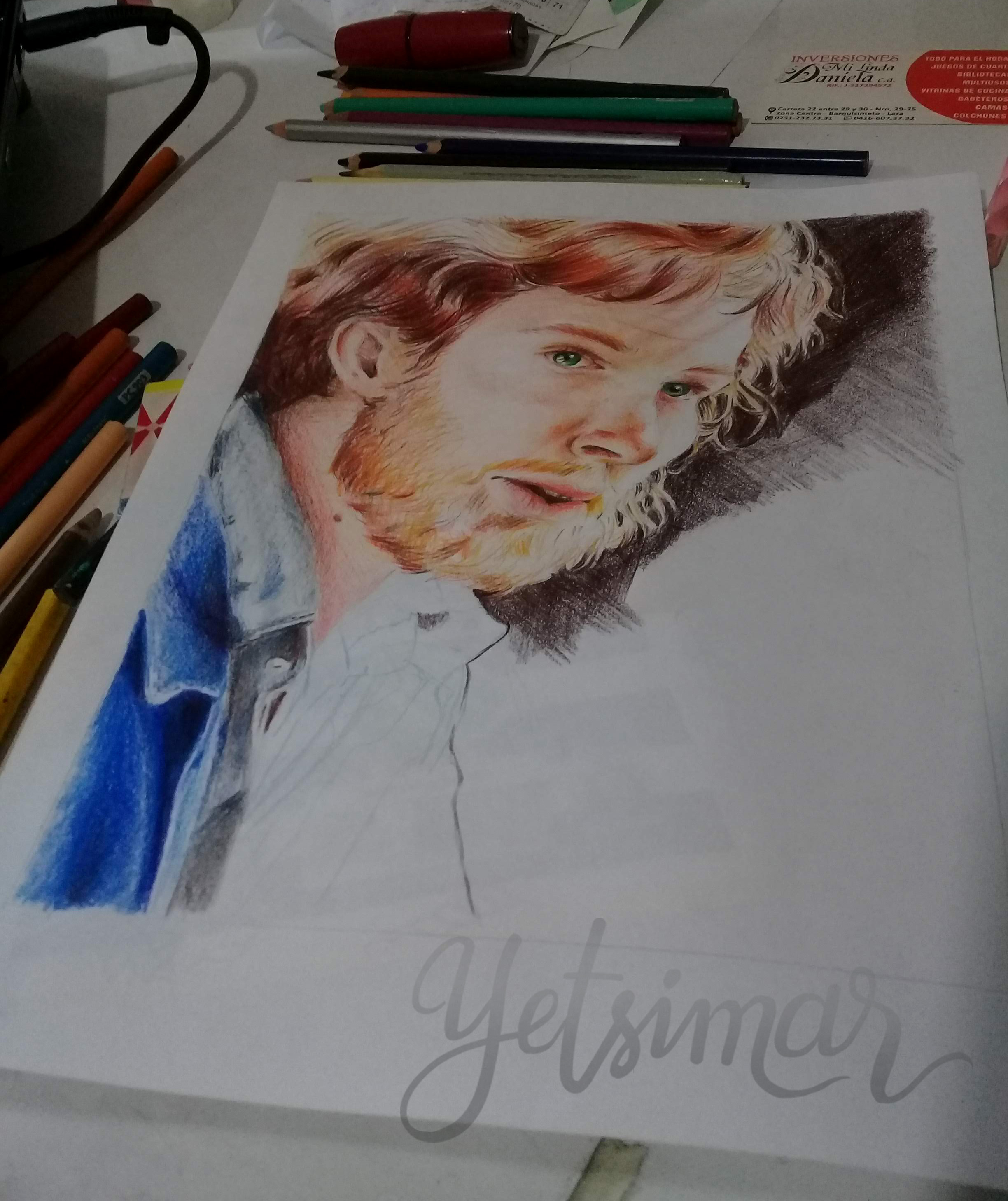 Para el tercer retrato de esta serie la palabra con la que contaba era en rojo, mi primera idea era encontrar alguna foto en la que estuviera usando algo de ese color, sin embargo encontré una foto en la que estaba interpretando al pintor post-impresionista Vicent Van Gogh en la que lucía una cabellera pelirroja y su piel bastante sonrrojada, razón por la cuál me he decidido por esta foto.
