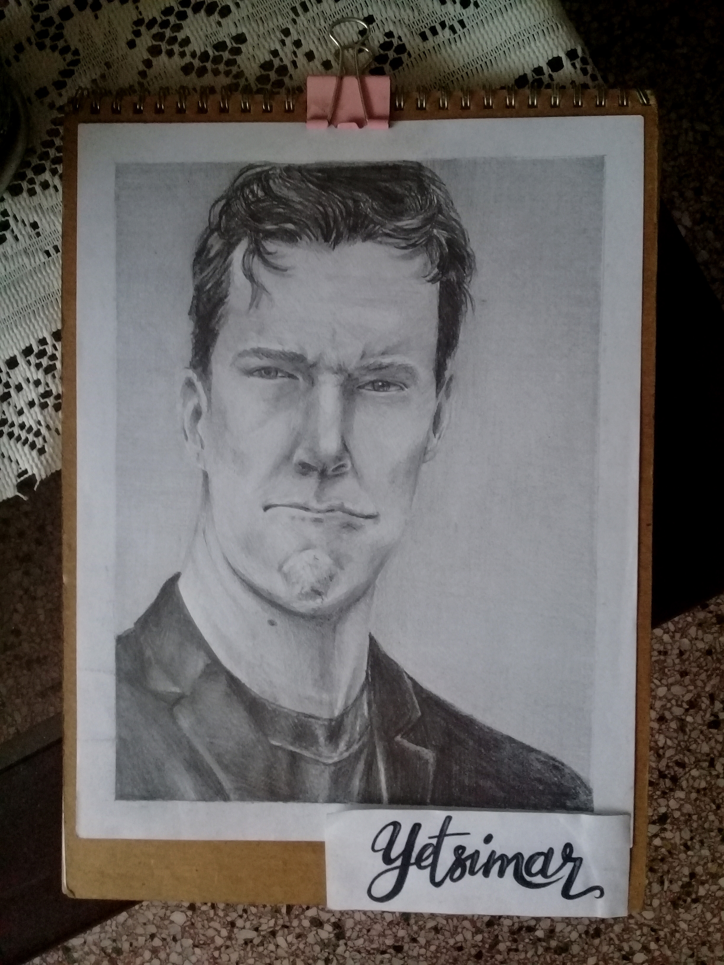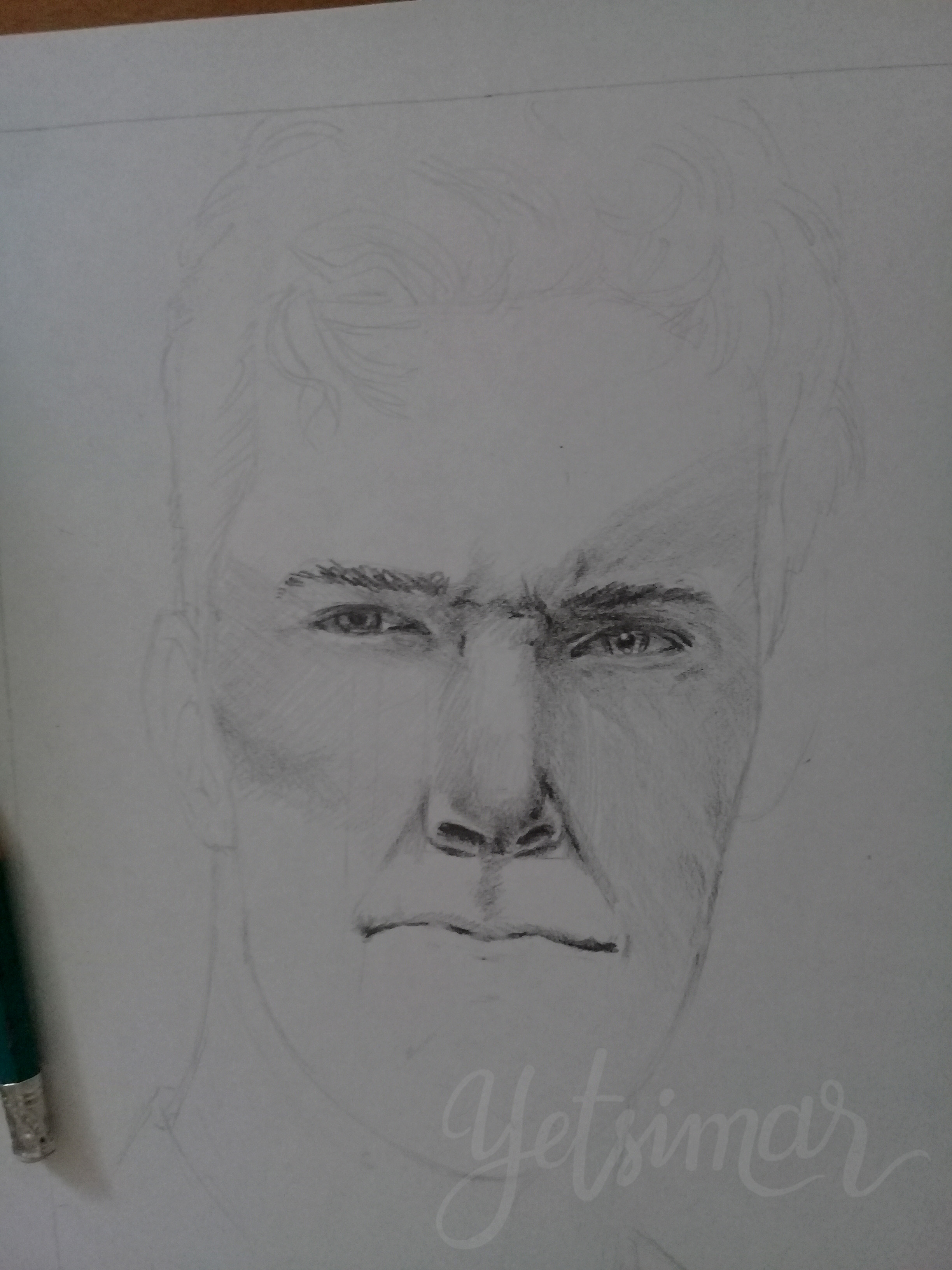 Una vez completado el dibujo se procede a la valorización mediante trazos, yo usualmente comienzo desde los ojos dibujando la mayor cantidad de detalles posibles y sin olvidar nunca la observación de la imagen de referencia