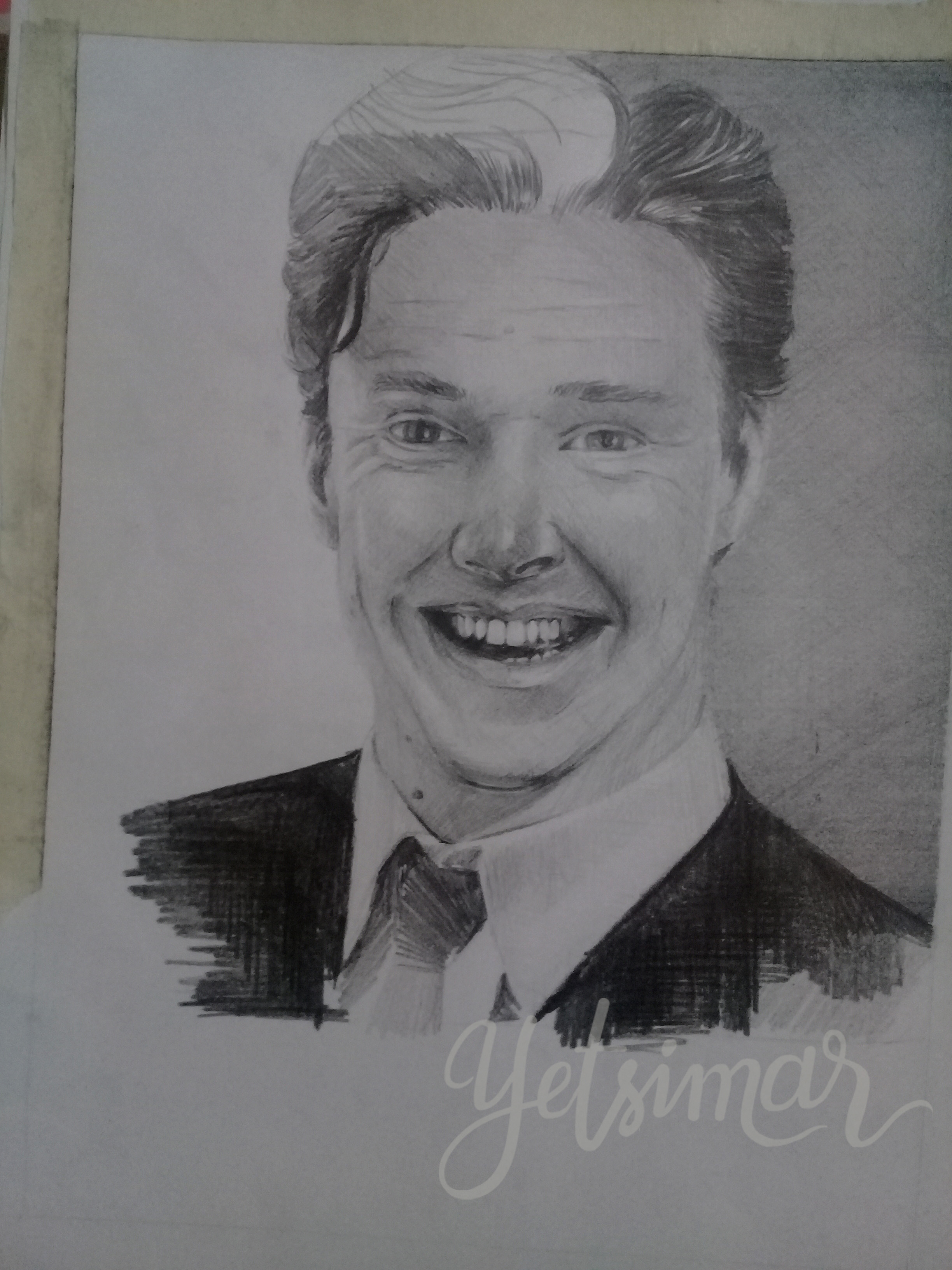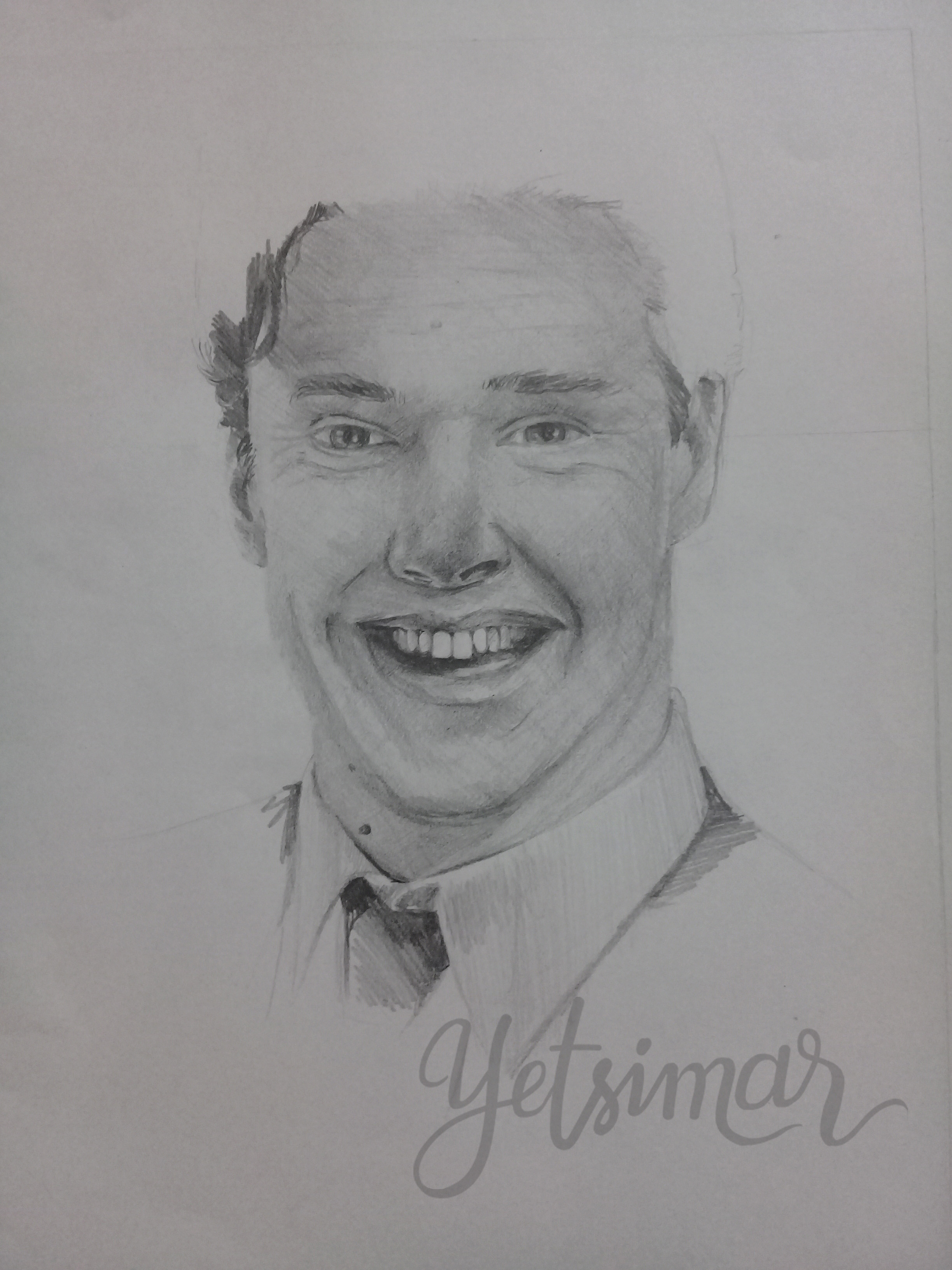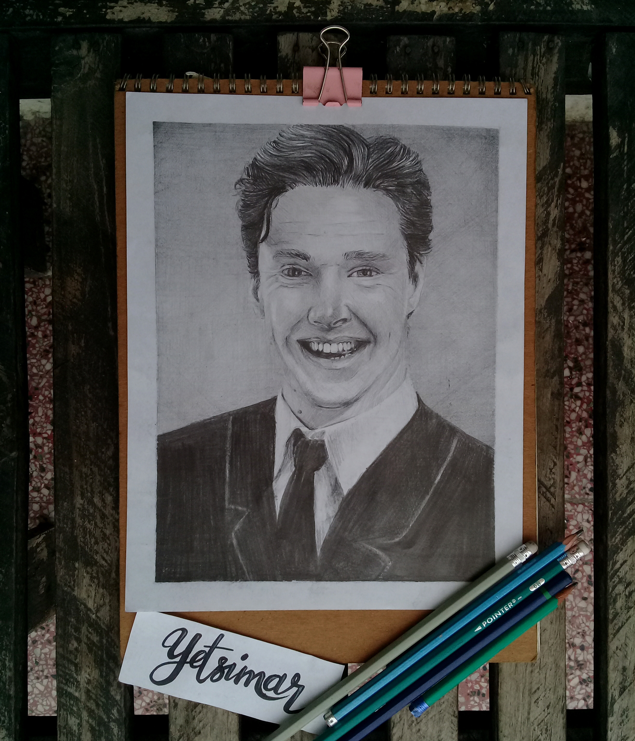 ¡Hola! Hoy les quiero mostrar el dibujo número ocho de esta serie de retratos el cual consistía en dibujar al artista sonriendo, este es uno de los retratos que mas me ha gustado aunque admito me sentía un poco insegura pues en la fotografía se podían apreciar los dientes y es algo que hasta la fecha no me había resultado tan bien ademas la sonrisa dibujaba en su rostro muchas líneas y arrugas que representaron un reto.