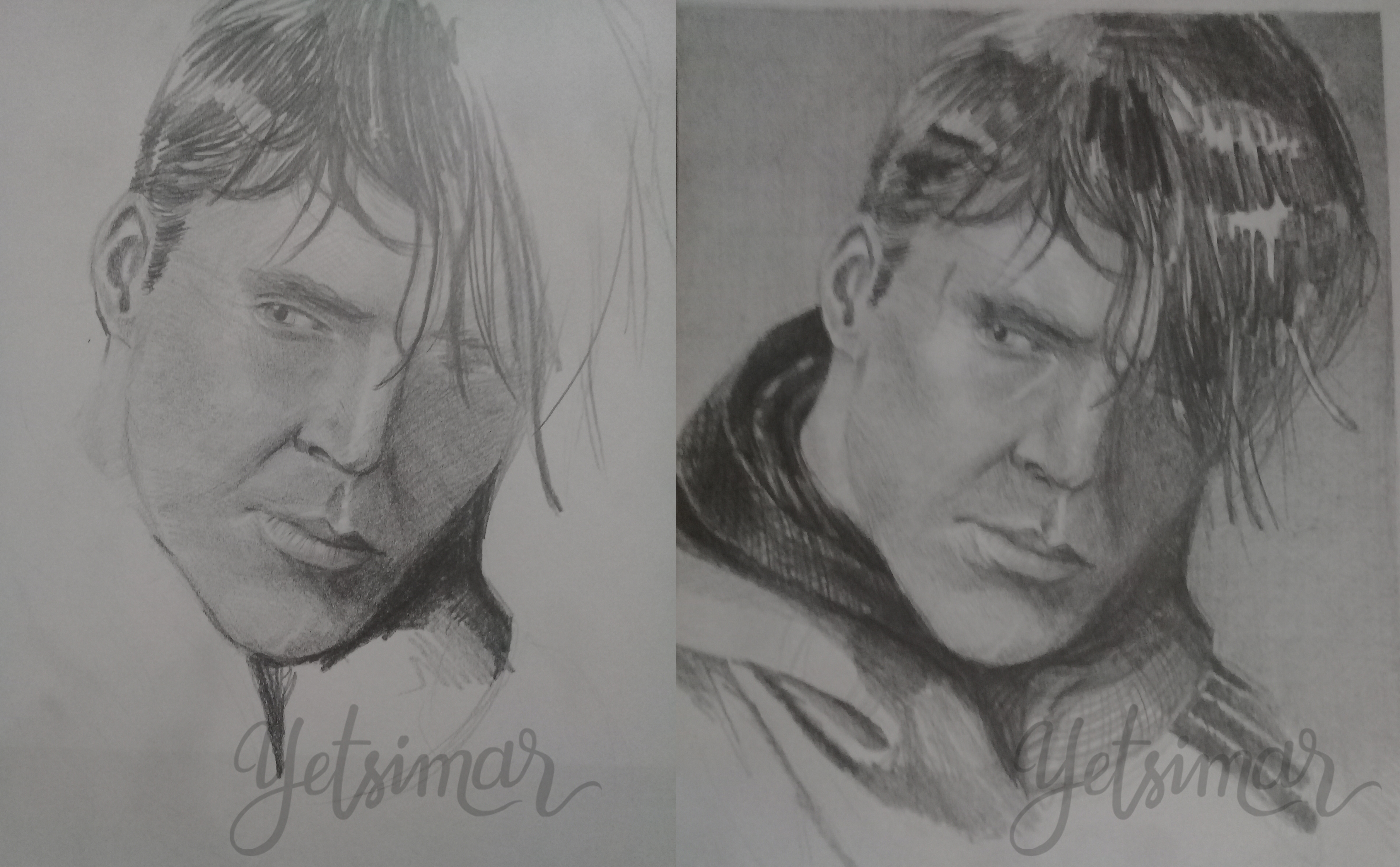 Posteriormente continúe trazando lineas hasta conseguir todos los tonos deseados para el rostro, asi como terminar de definir cada detalle del rostro, a partir de este punto solo hacia falta definir el cabello y la parte del vestuario que estaba visible, durante la realización de los cabellos se me dificultó un poco debido a que la paciencia no es una de mis virtudes y los cabellos del personajes estaban bastante desaliñado.