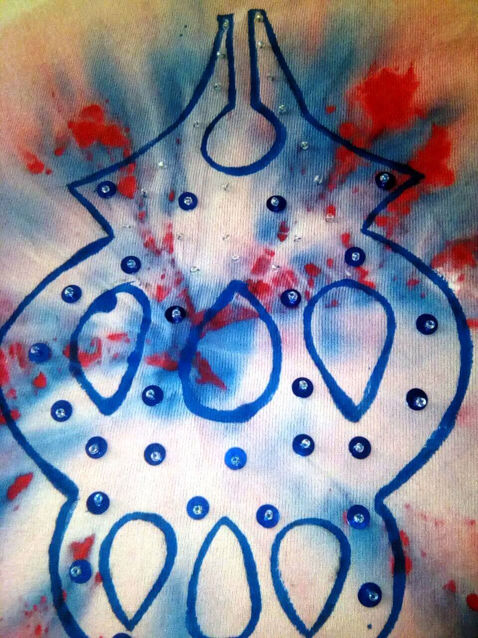 - Copie a la franela el logo y lo borde con lentejuelas y canutillos.