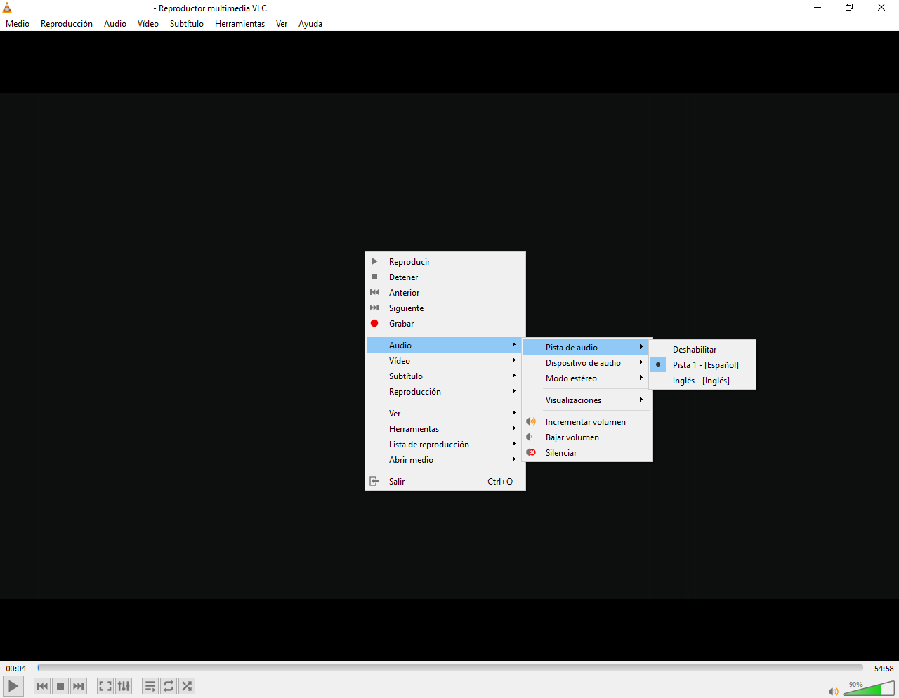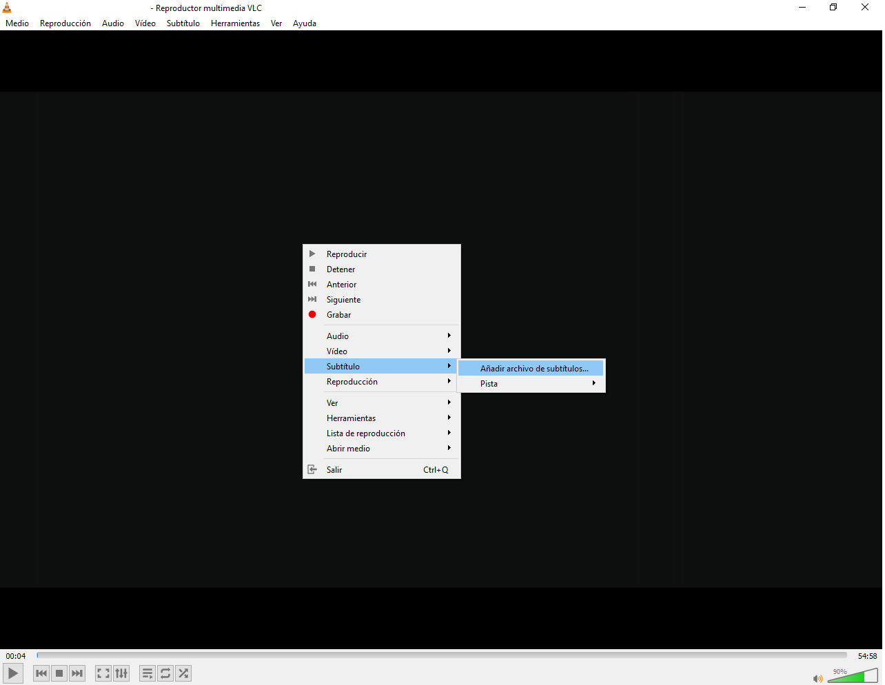 Podremos usar todo lo que trae nuestro archivo de vídeo con este reproductor, cambiar el audio de español a ingles con su atajo de teclado "B" solo si la película o serie posee doble audio, agregar subtítulos con el atajo de teclado "V" o de forma manual ("clic derecho > Subtítulo > Añadir archivos de subtítulos..." y escogiendo el archivo que descargamos).